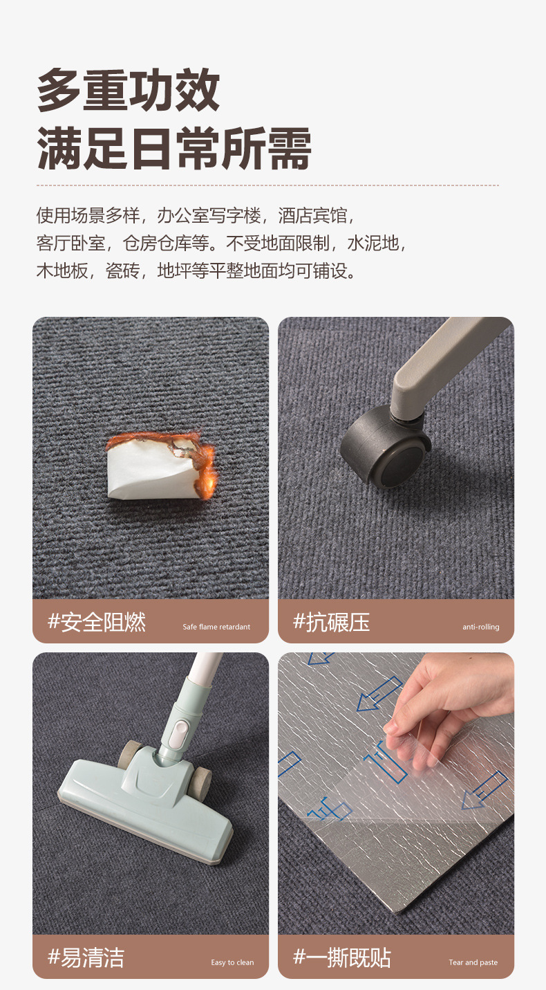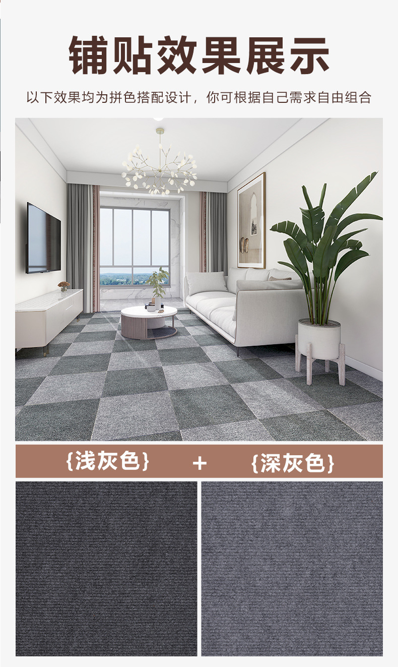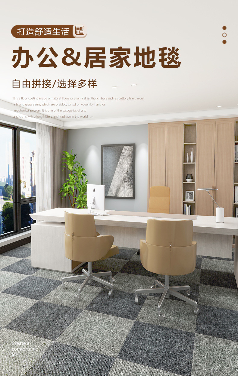 オフィス用ブロックカーペット、ビリヤード場、商業ビル、会社用カーペット、セメント床に直接敷設可能