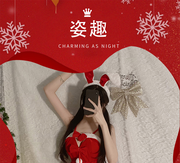 セクシーなクリスマスバニーガールコスチューム、魅惑的な新年の衣装、新年の戦闘服、ショートローブ