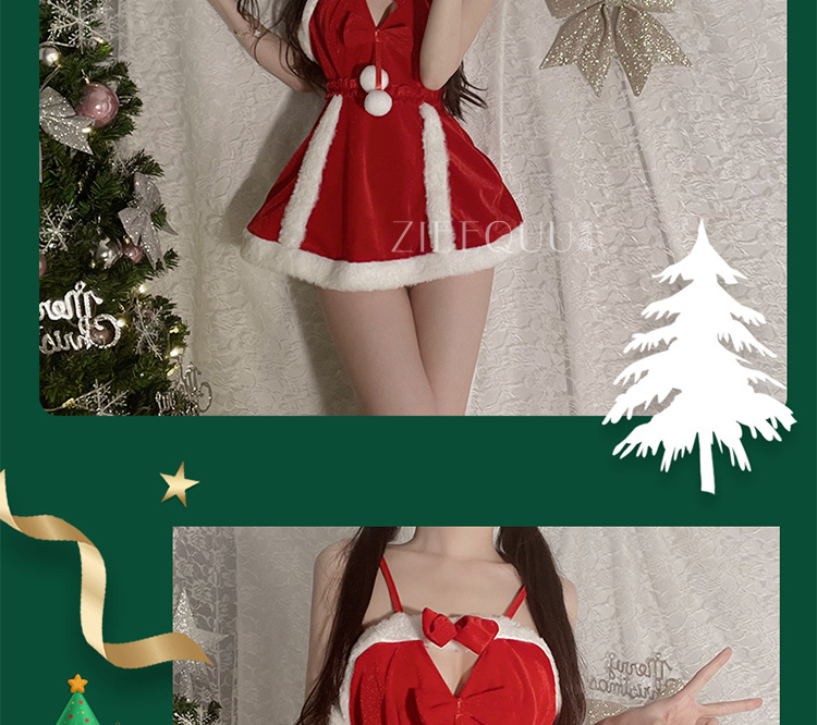 Ziqu 新年クリスマス制服セクシーなランジェリーベルベットネグリジェロールプレイセクシーな新年シャツネグリジェセット