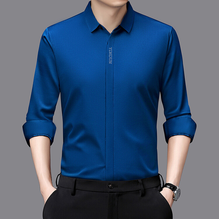 春と秋のホリデーツーピースシャツメンズルーズ長袖ハイエンドラペルシャツカジュアル多用途ビジネスアイロン不要の服