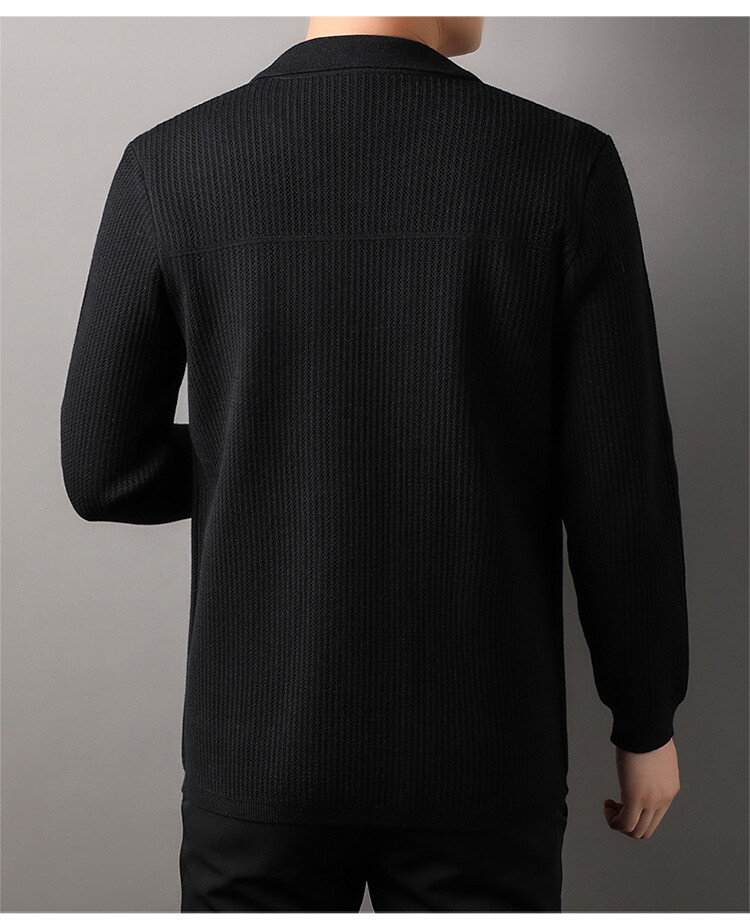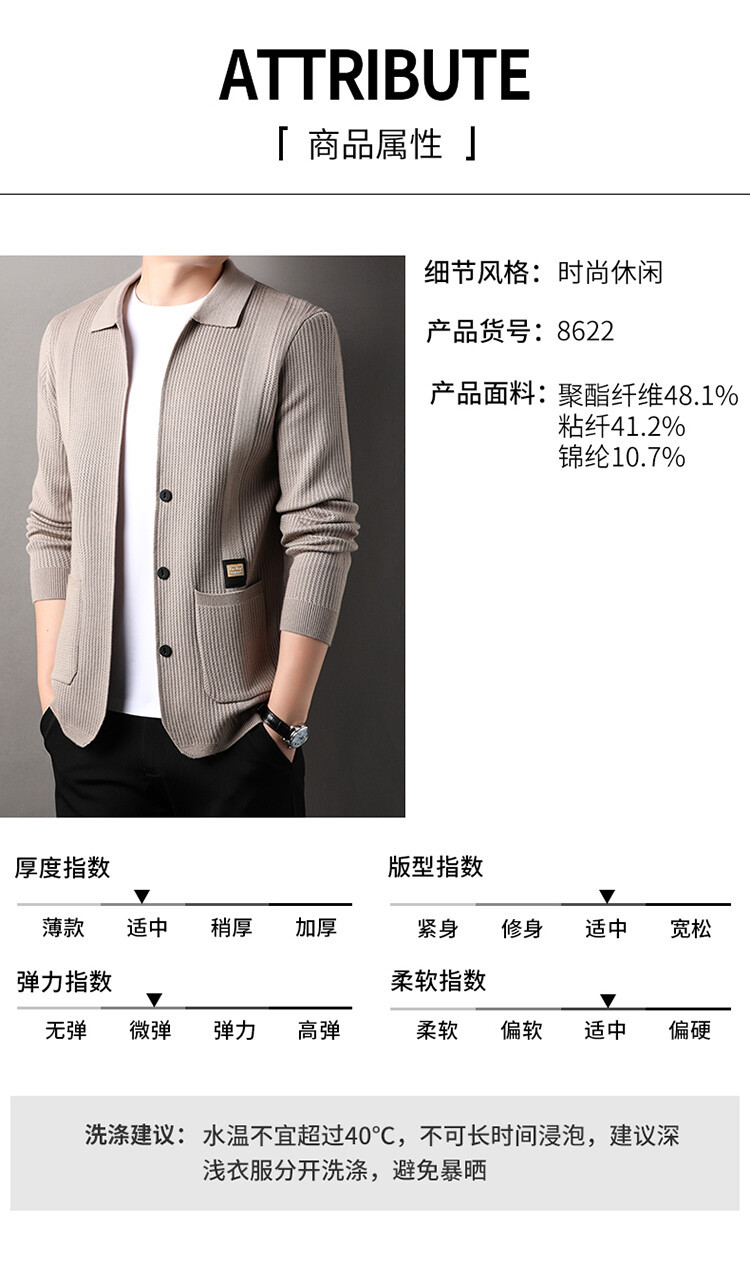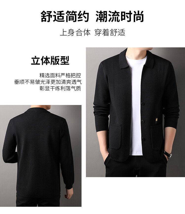 男士高档针织翻领开衫毛衣春秋季时尚新款帅气休闲针织衫西装外套