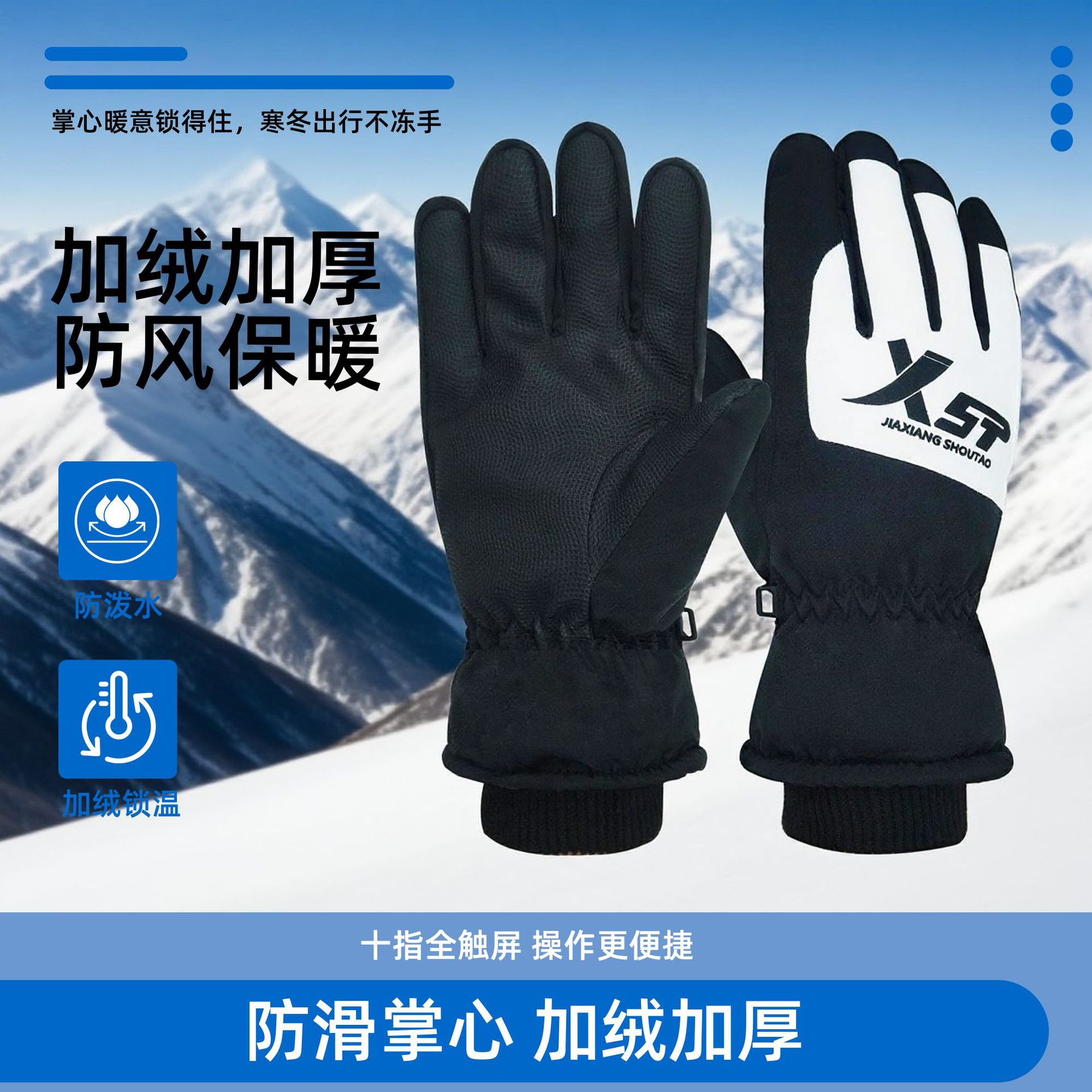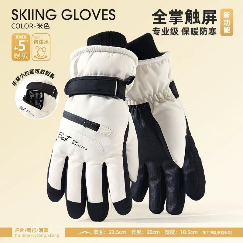 冬季滑雪加绒手套男女款防寒触屏防滑可骑行摩托车防风防雨御寒