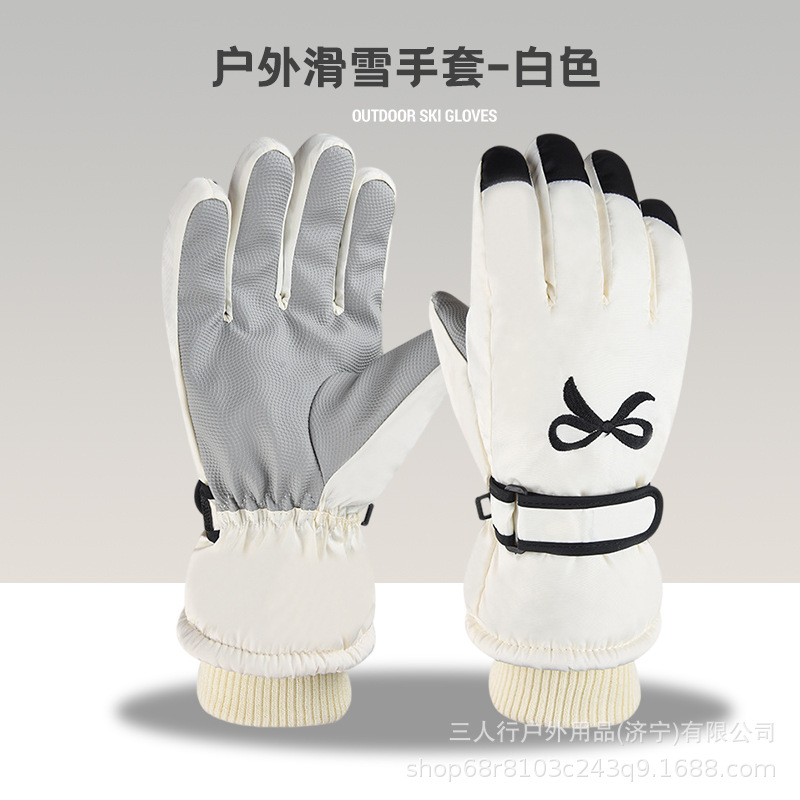 かわいい刺繍入りリボンプラスベルベット厚みのある防風性と防水性の屋外サイクリング電気自動車フルフィンガータッチスクリーンスキーグローブ