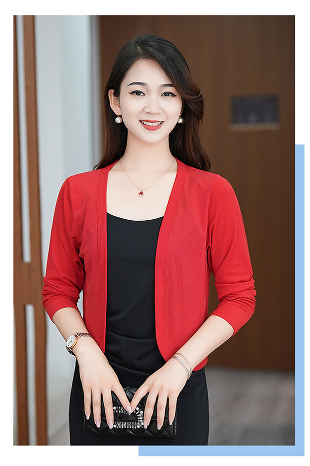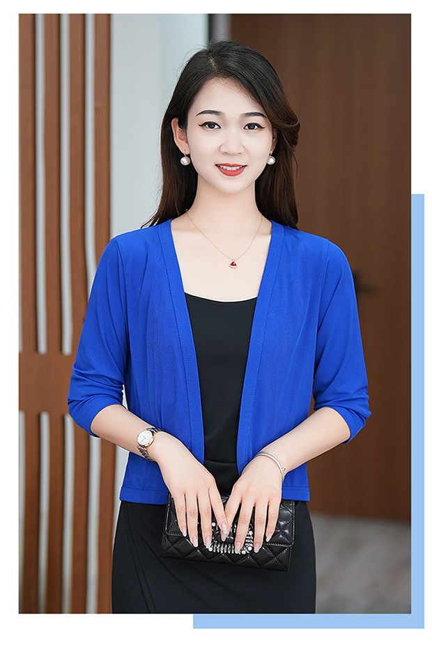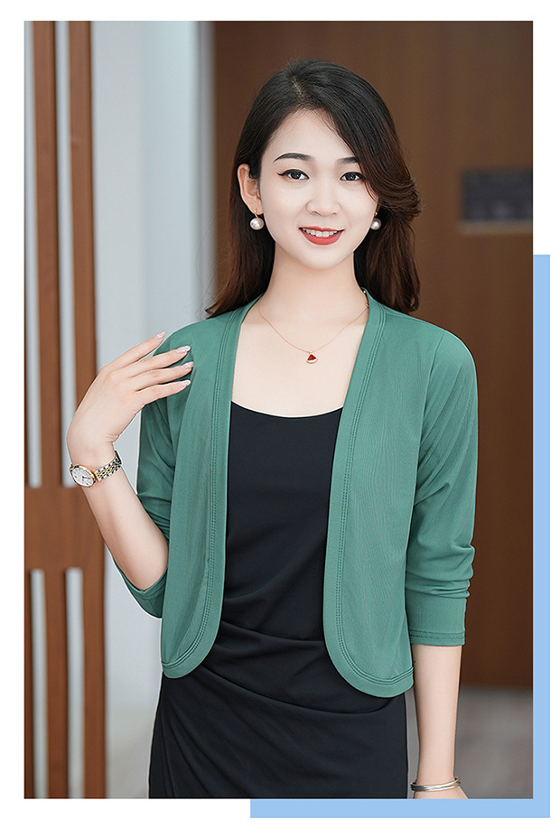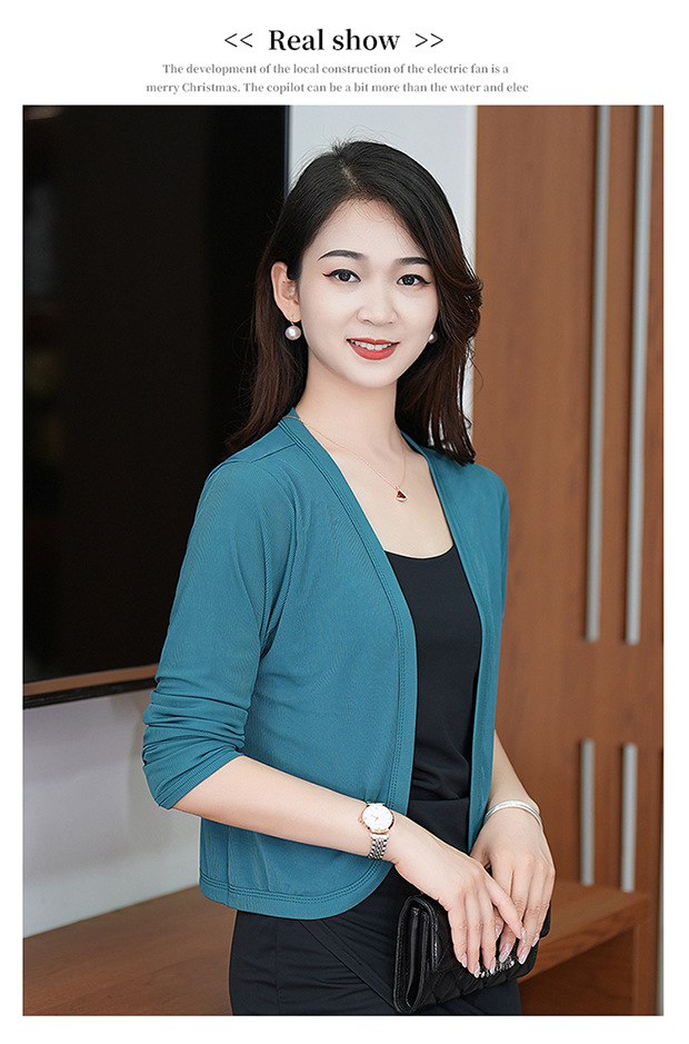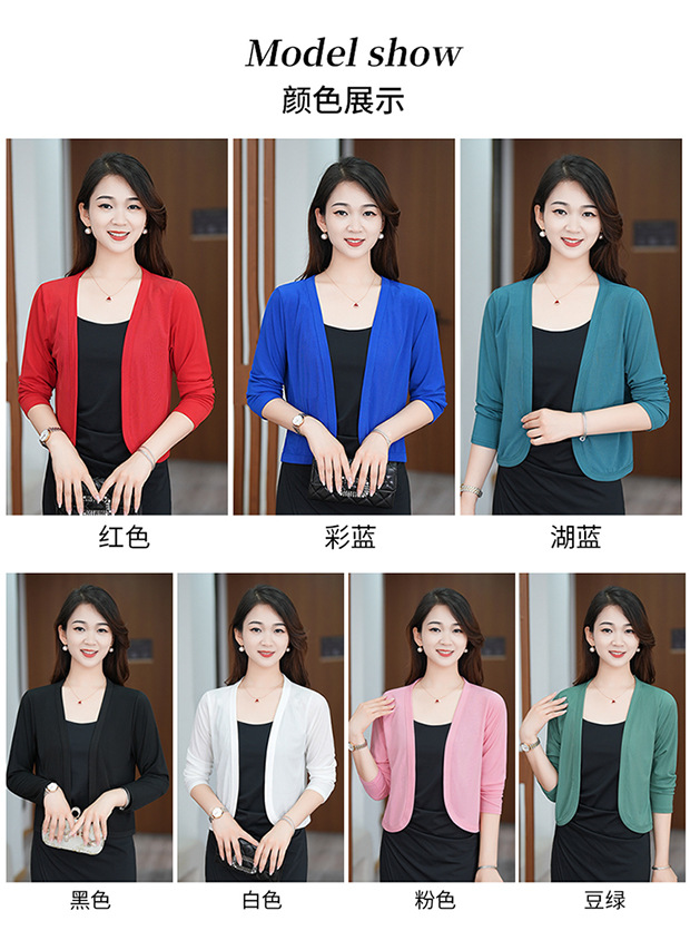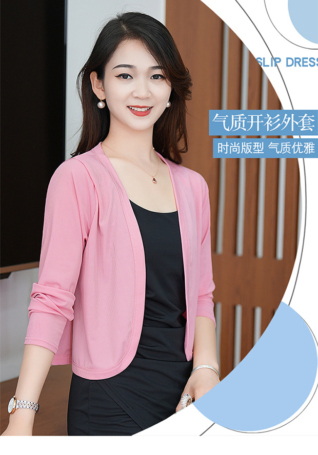 夏服の新型女性長袖純色の氷糸カーディガンの外にストールを掛けて肩を保護します。