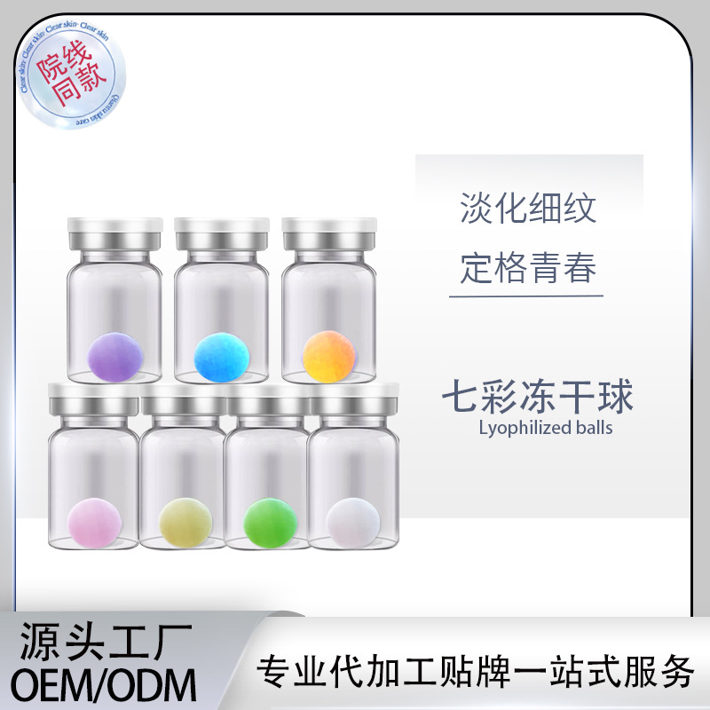 カラー凍結乾燥ボール七彩裸瓶卸売りコラーゲン凍結乾燥粉ボールは水を補充して薄い小紋を保護する