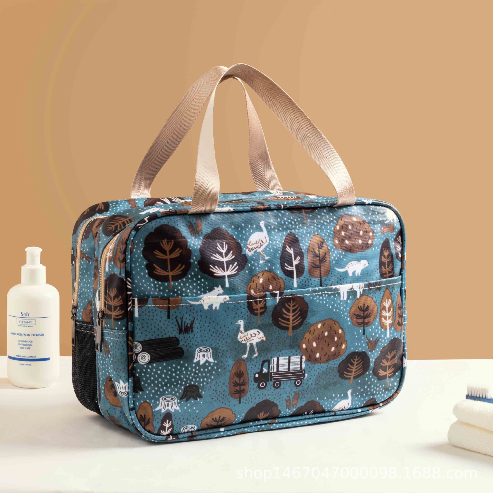新型化粧バッグレディース外国貿易韓国式砕花洗面バッグ携帯防水綿布収納バッグ大容量旅行