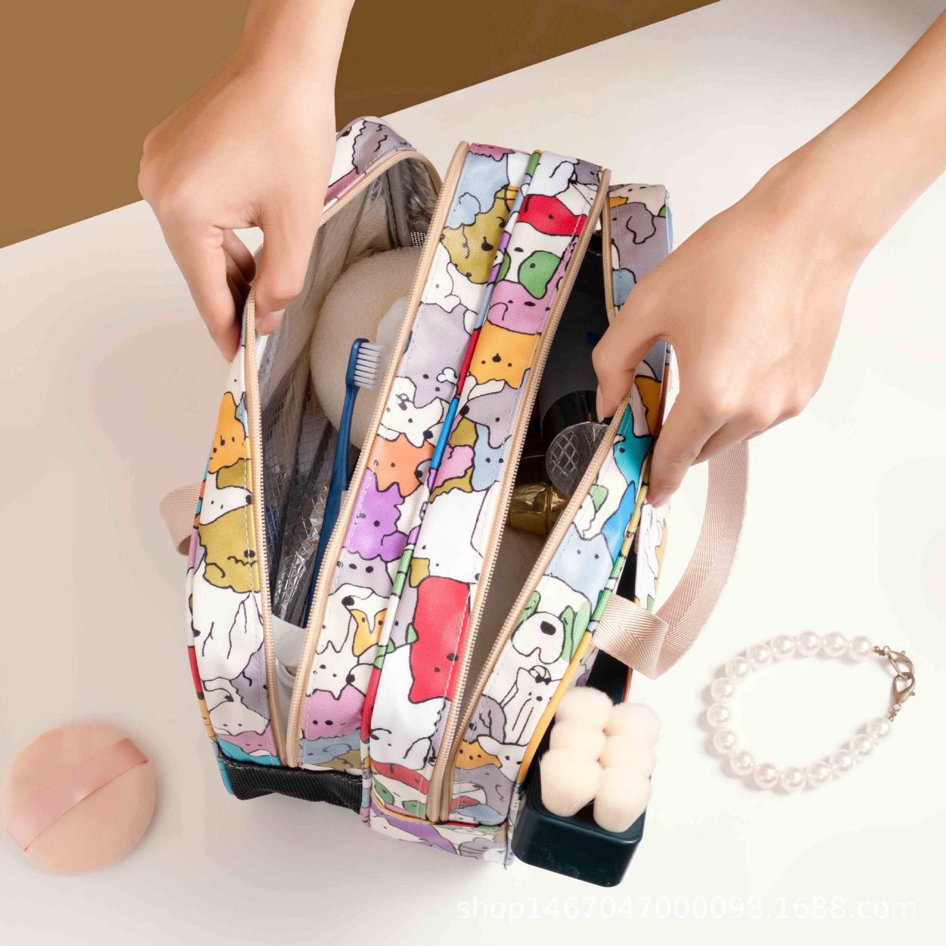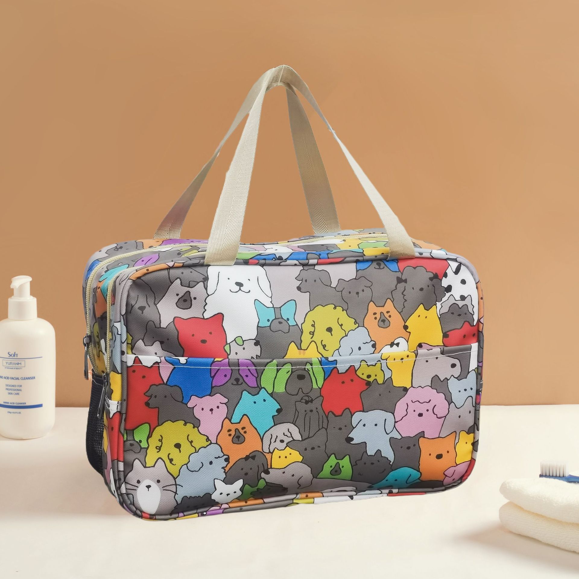 携帯多機能アニメ化粧袋韓国式帆布餃子化粧バッグ防水収納洗面バッグ卸売り