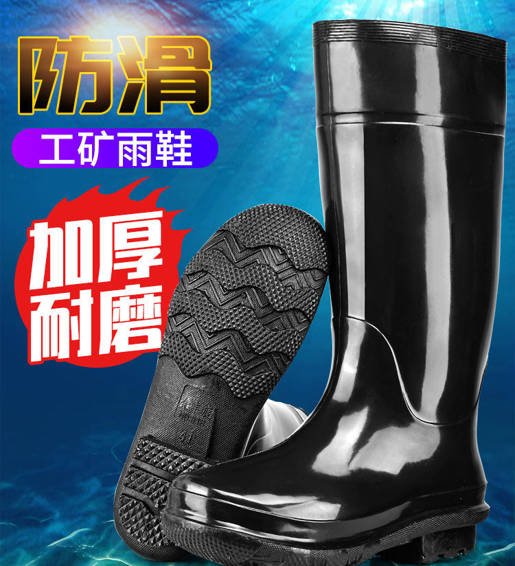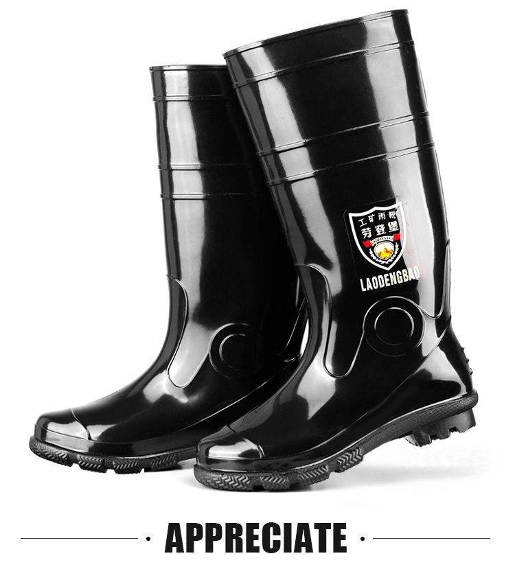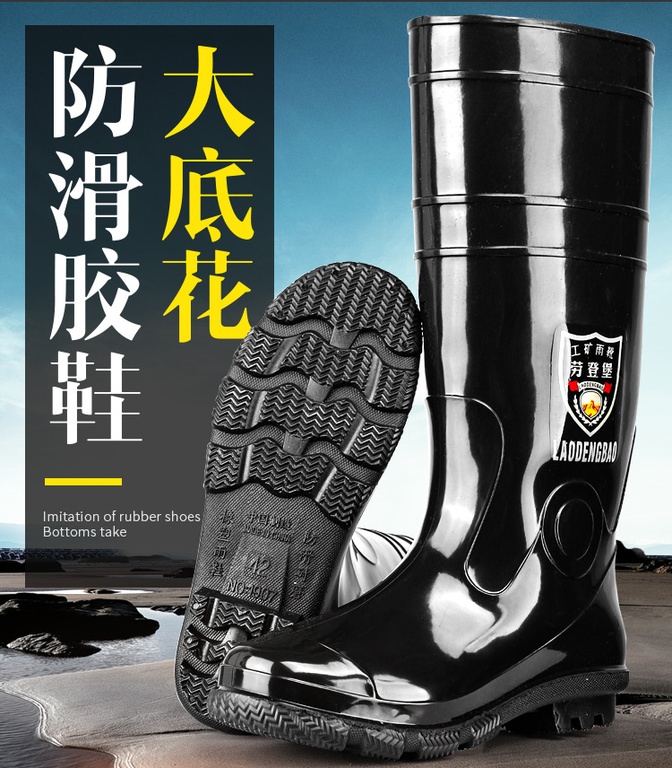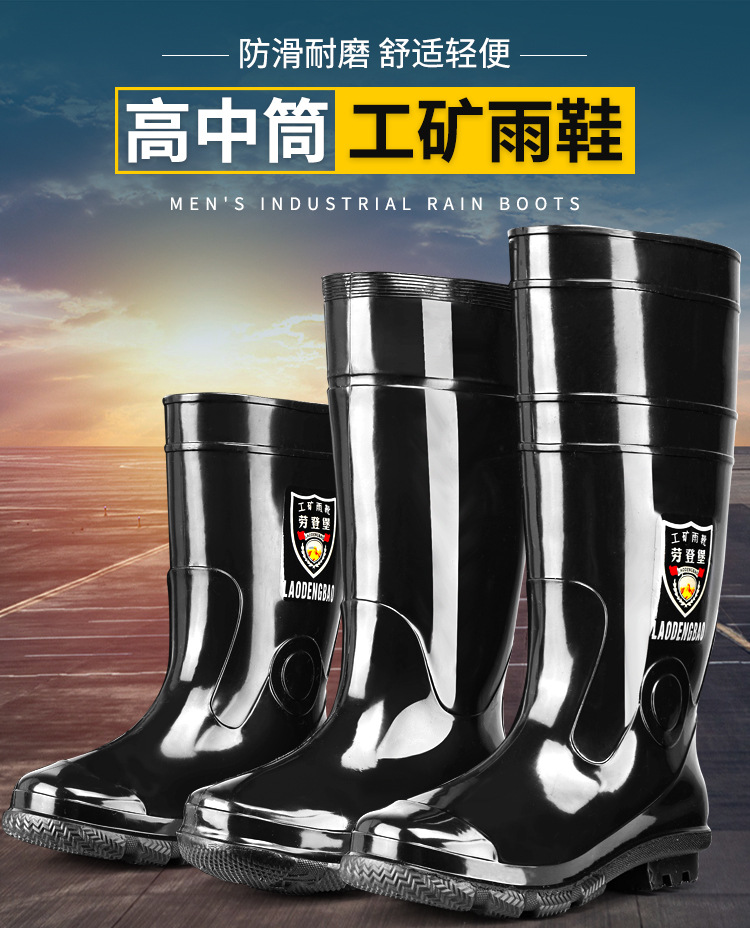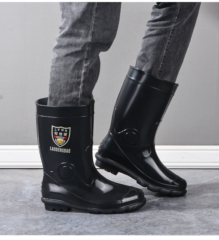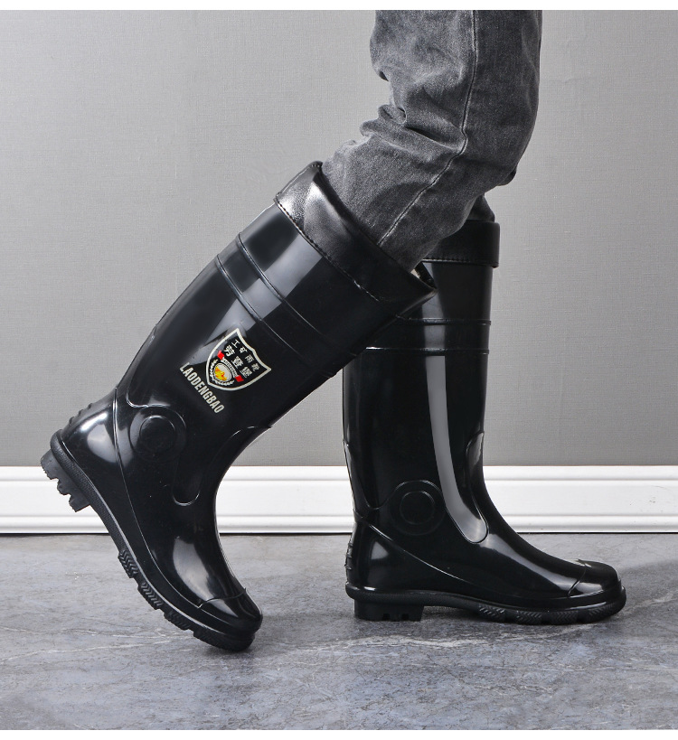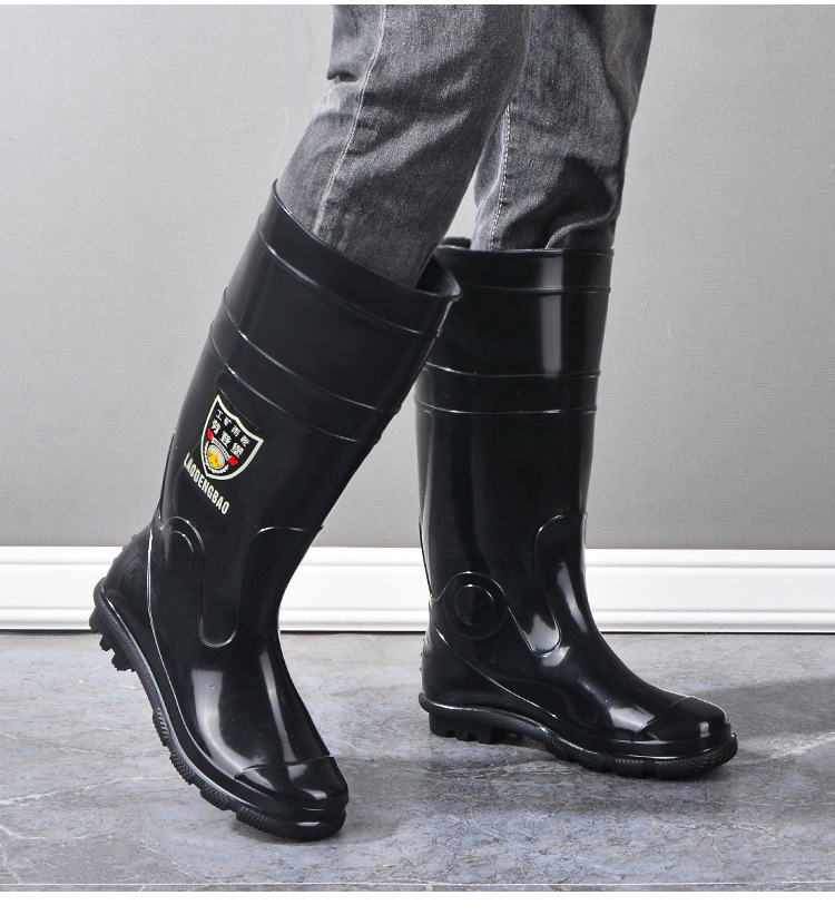 軍登黒高筒水靴長筒雨靴キッチン滑り止め水靴アウトドア靴雨靴労働保護ゴム靴男靴
