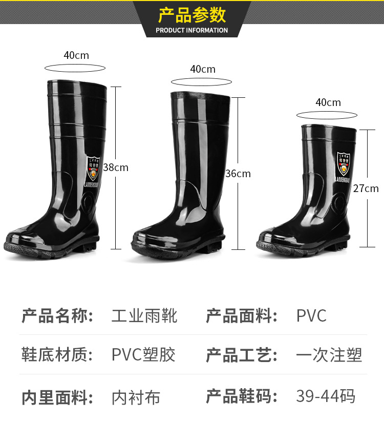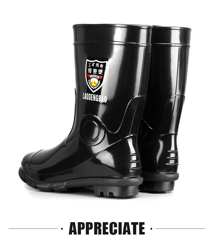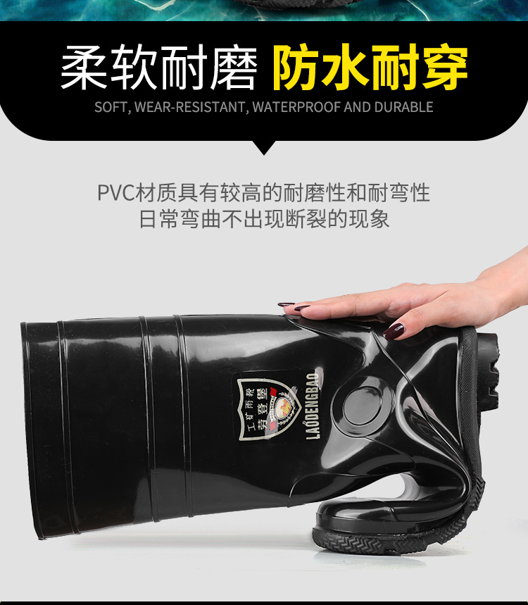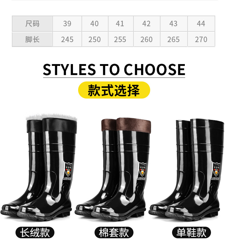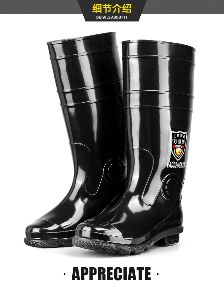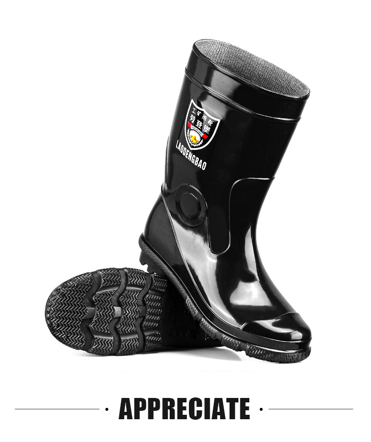 軍登黒高筒水靴長筒雨靴キッチン滑り止め水靴アウトドア靴雨靴労働保護ゴム靴男靴
