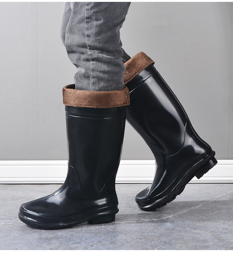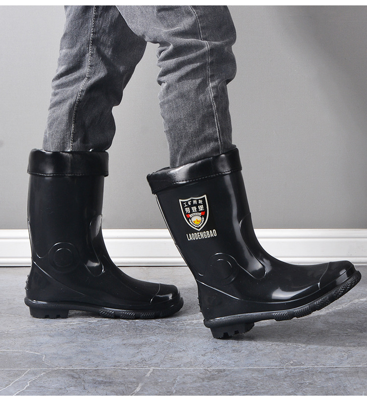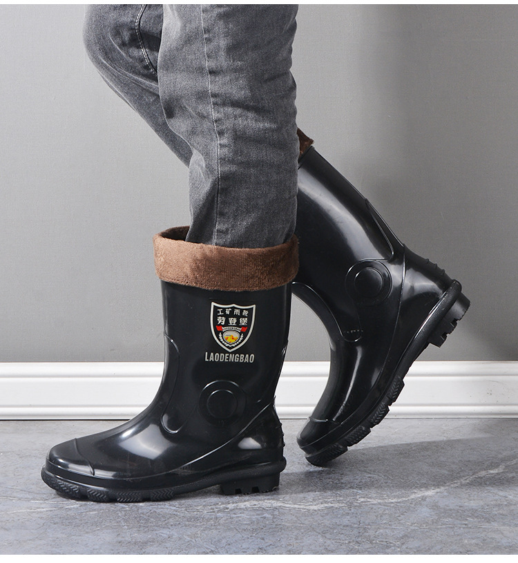 冬保温男性ゴム靴英倫防水ロープ雨靴中筒アウトドアファッション口ゴム靴滑り止め釣り靴