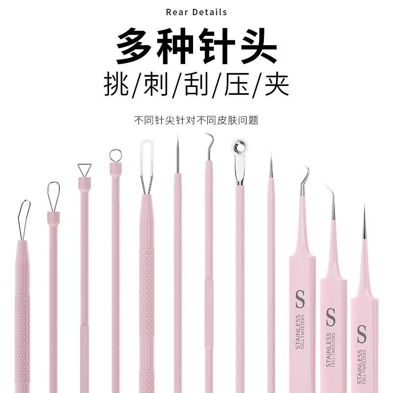 メーカー現物ステンレスニキビ針細胞クリップニキビ針押しニキビ黒頭ピンセットツールセット