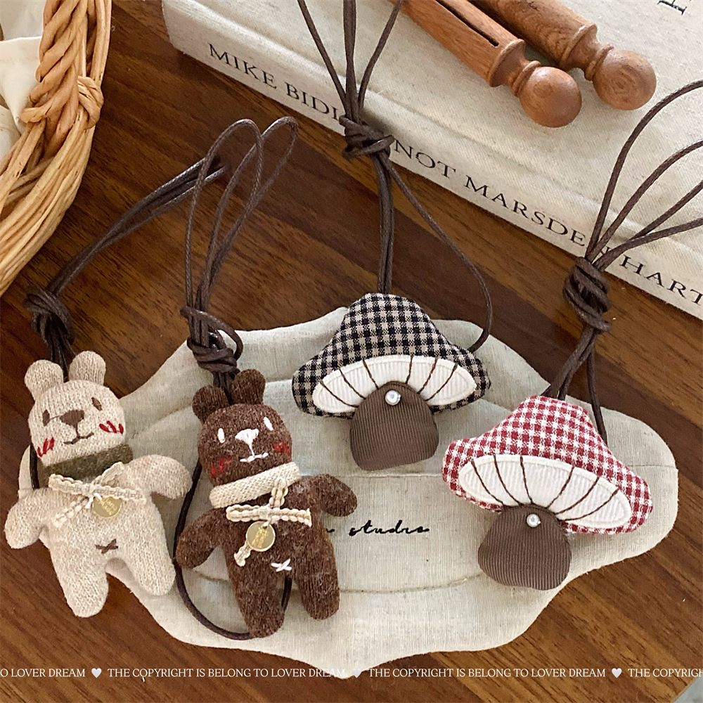 韓国の新しいアニメのぬいぐるみの熊のキノコは皮のネックレスの甘いクリスマスの祝日の雰囲気をまねることができます。