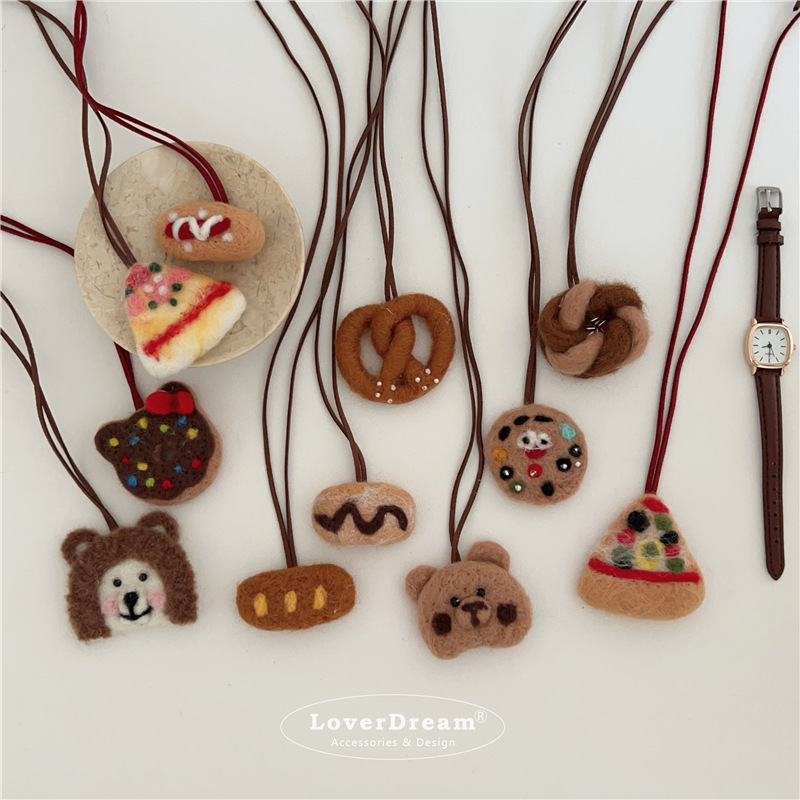 韓国の新しいカレー色のウールのフェルトのビスケットの動物は皮の子供のネックレスの甘くて可愛いです。