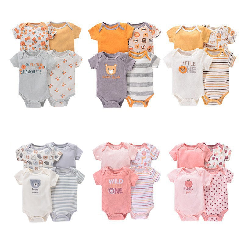 夏の赤ちゃんの半袖は服のスーツの0-1歳の男女の赤ちゃんのかわいいお尻の服の4つのセットの卸売りの対外貿易を登ります。