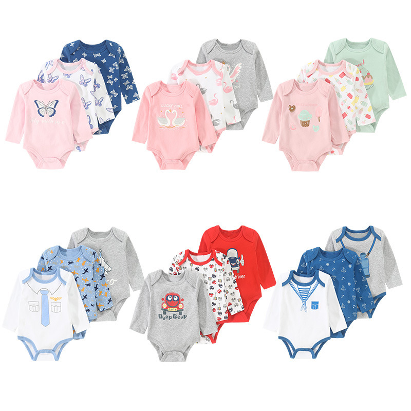 赤ちゃんの服の新型の長袖の連体のお尻の服の赤ちゃんの春秋はよじ登って服の対外貿易の3セットの越境の決まりました。