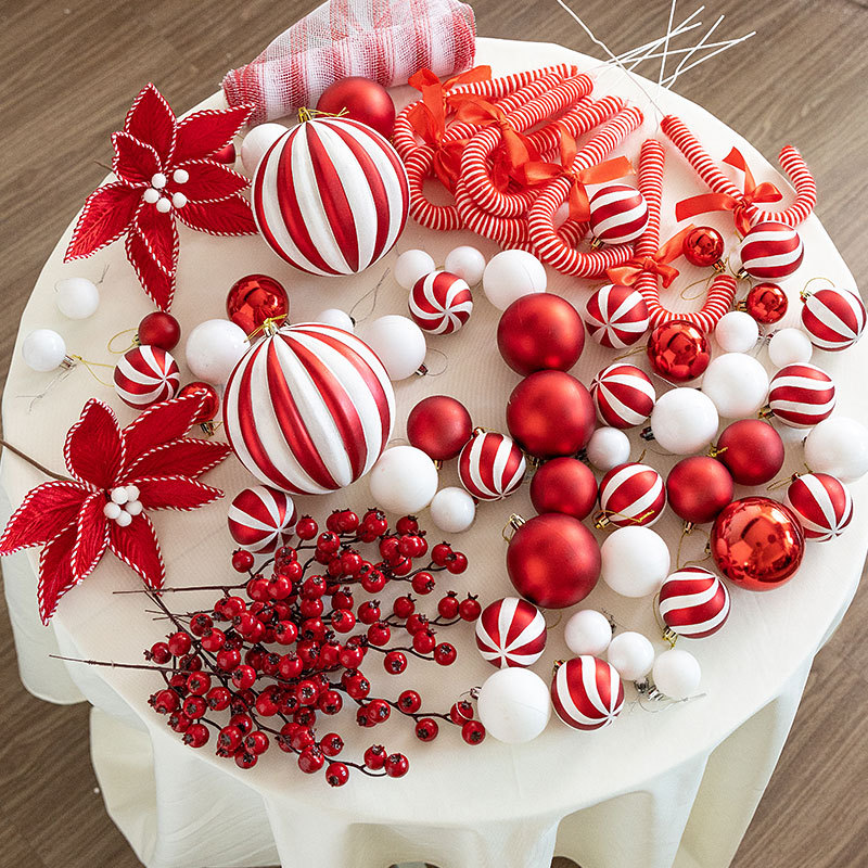 热销圣诞树装饰品酒红色植绒球纯配饰礼包套装吊球diy圣诞树挂件
