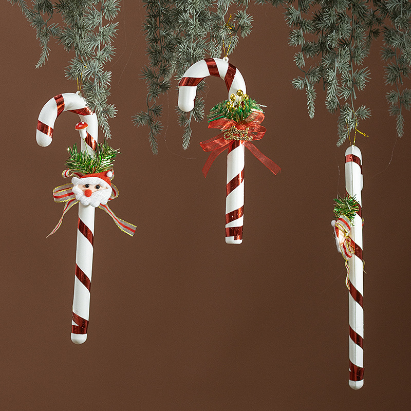 跨境圣诞节装饰品红白糖果小拐杖圣诞树挂件银色金色手工拐杖挂饰