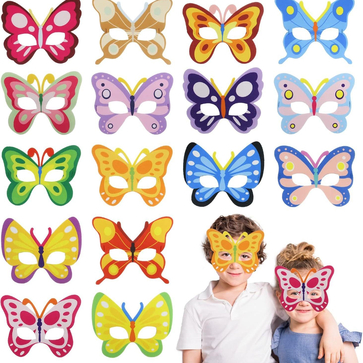 蝶フェルトマスク 16 個、子供のテーマのコスプレパーティー、誕生日の装飾、仮面舞踏会の顔に適しています。