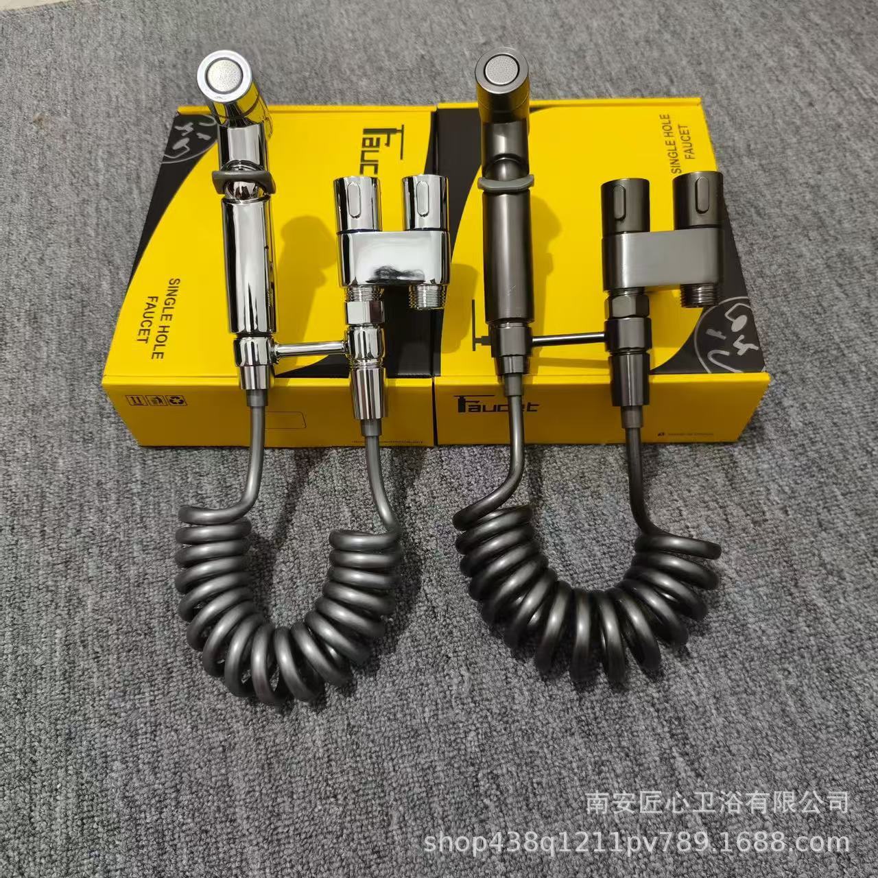 国境を越えた新しい亜鉛合金トイレ携帯型浴槽噴霧器一進二出角弁二重制御独立型スプレー