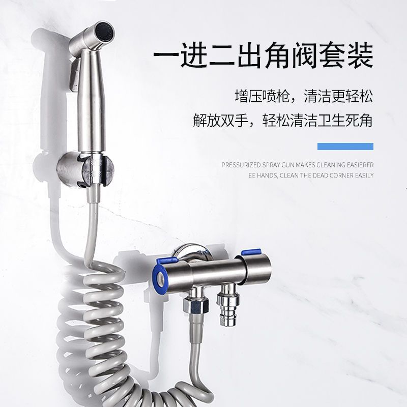 ステンレス家庭用便器スプレーガン一進二出便器パートナートイレ三角弁増圧ノズル洗浄器