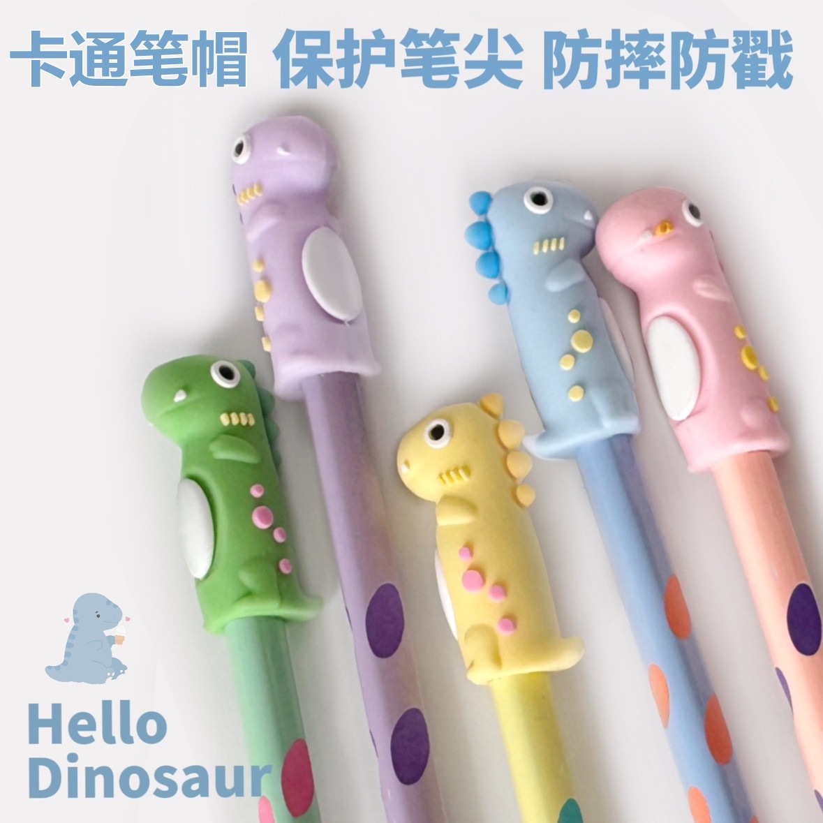 かわいい恐竜ペンセット子供漫画ペンキャップ学生幼稚園小さな賞品文房具ギフトソフト鉛筆ペンキャップ