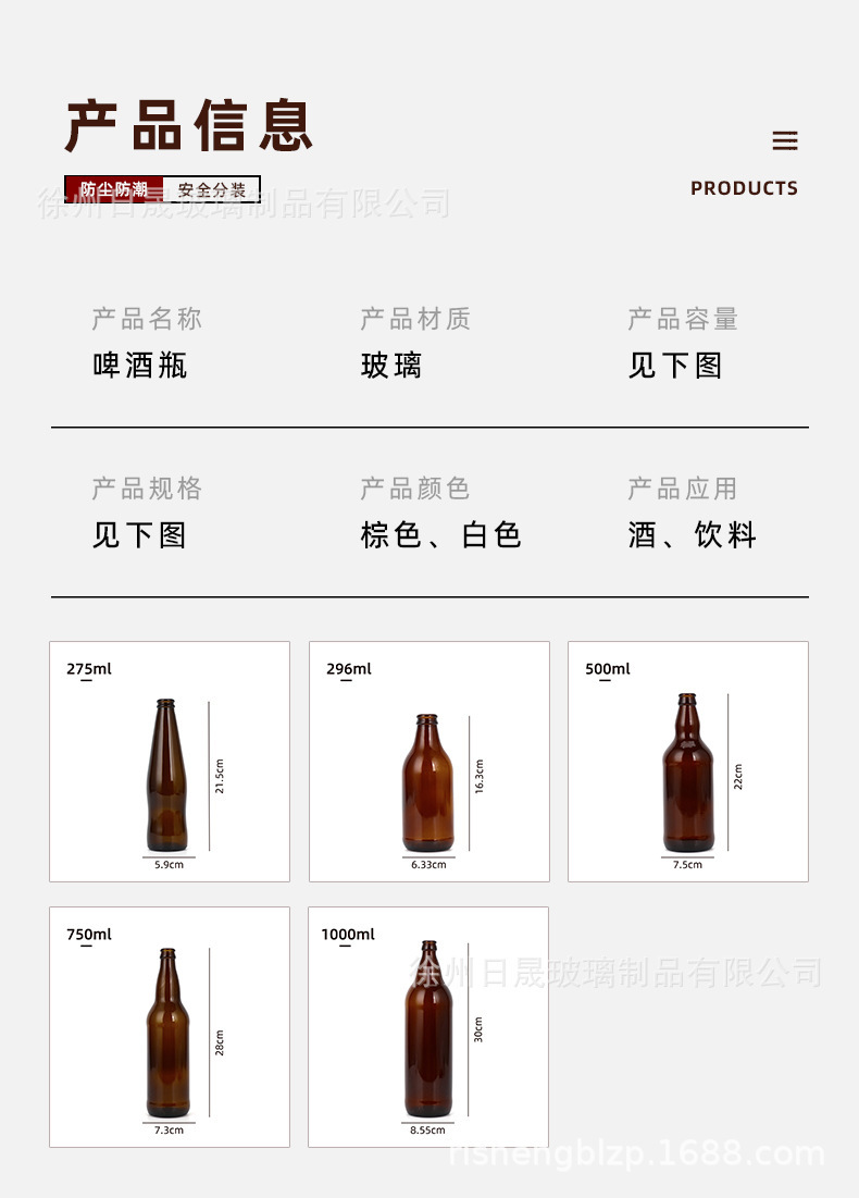 1000ml茶色ビール瓶空瓶精醸造瓶コーヒー瓶氷瓶650mlガラス瓶印刷ロゴ