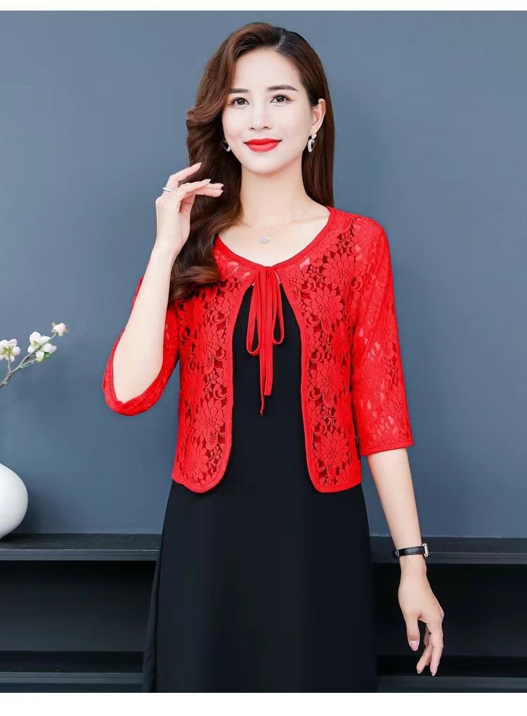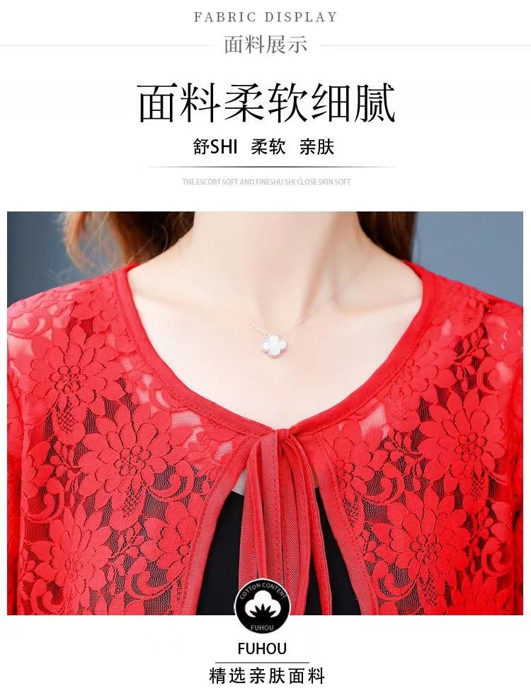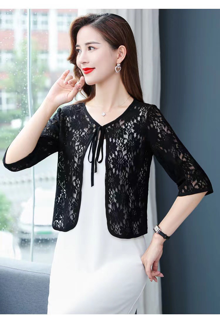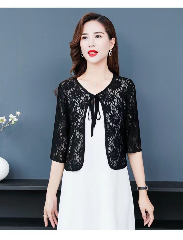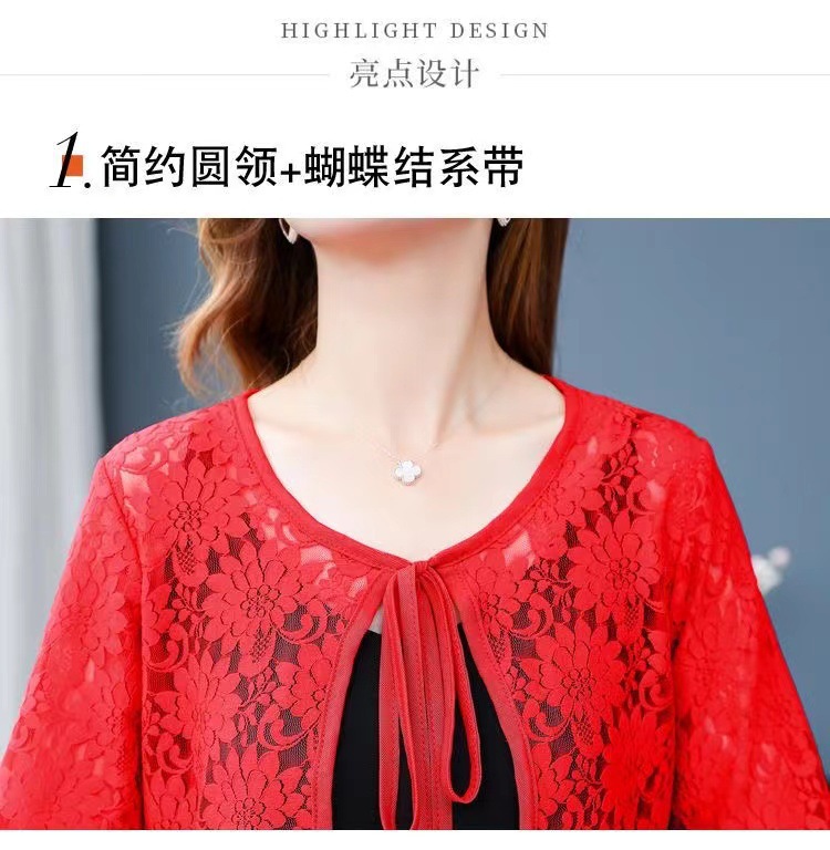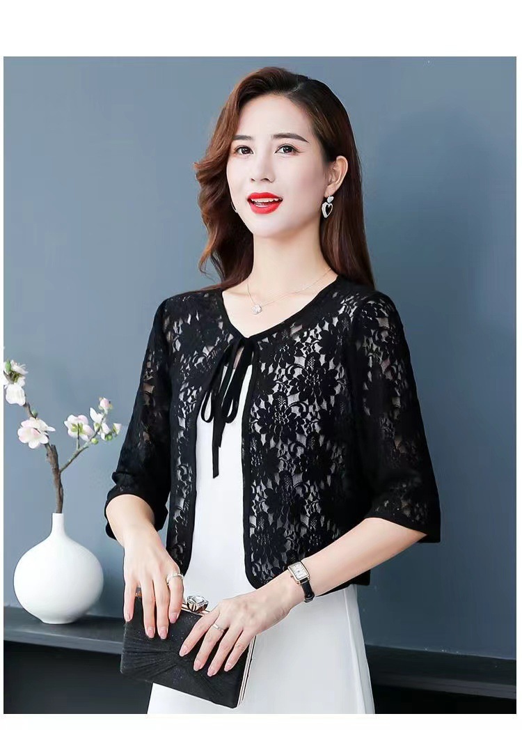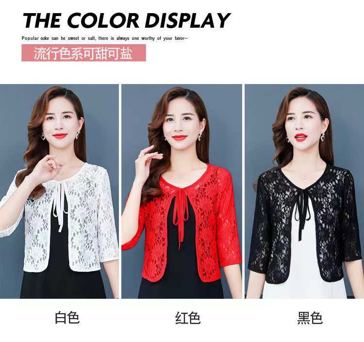 レースの小さいショールのカーディガンのコートは夏にスカートのチャイナドレスの外でお母さんの薄い通気性の日焼け止めのカーディガンに乗ります。