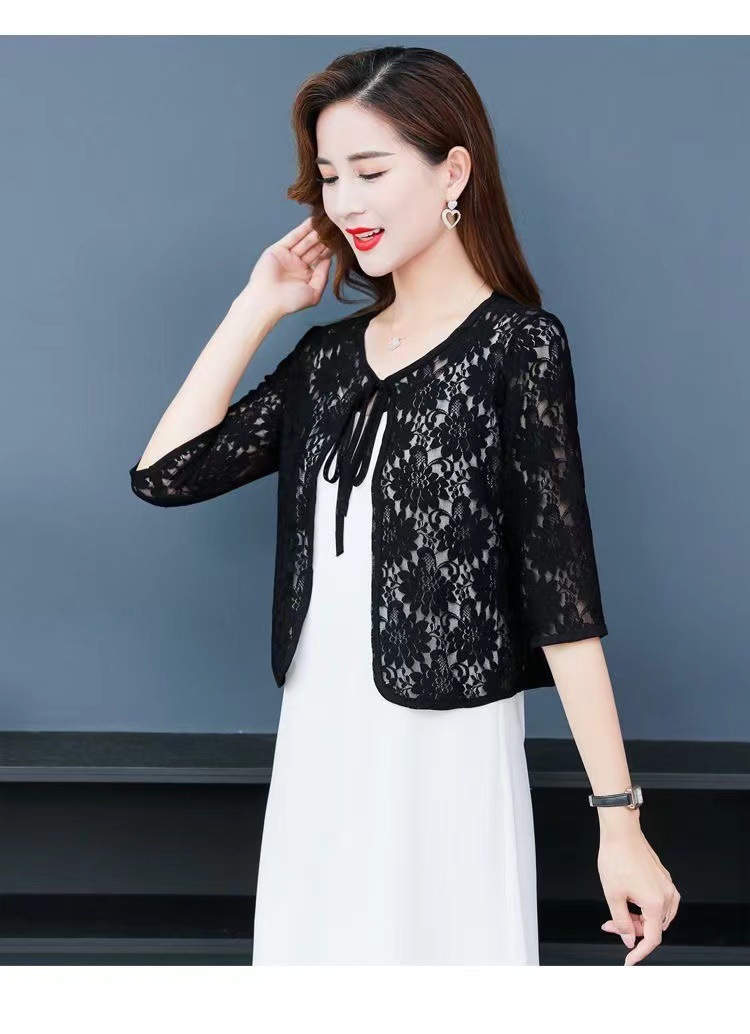 夏の薄いレースの小さいショールの外は蝶結びの洋風の日焼け止めの服のファッションに合わせてショートコートのカーディガンを掛けます。