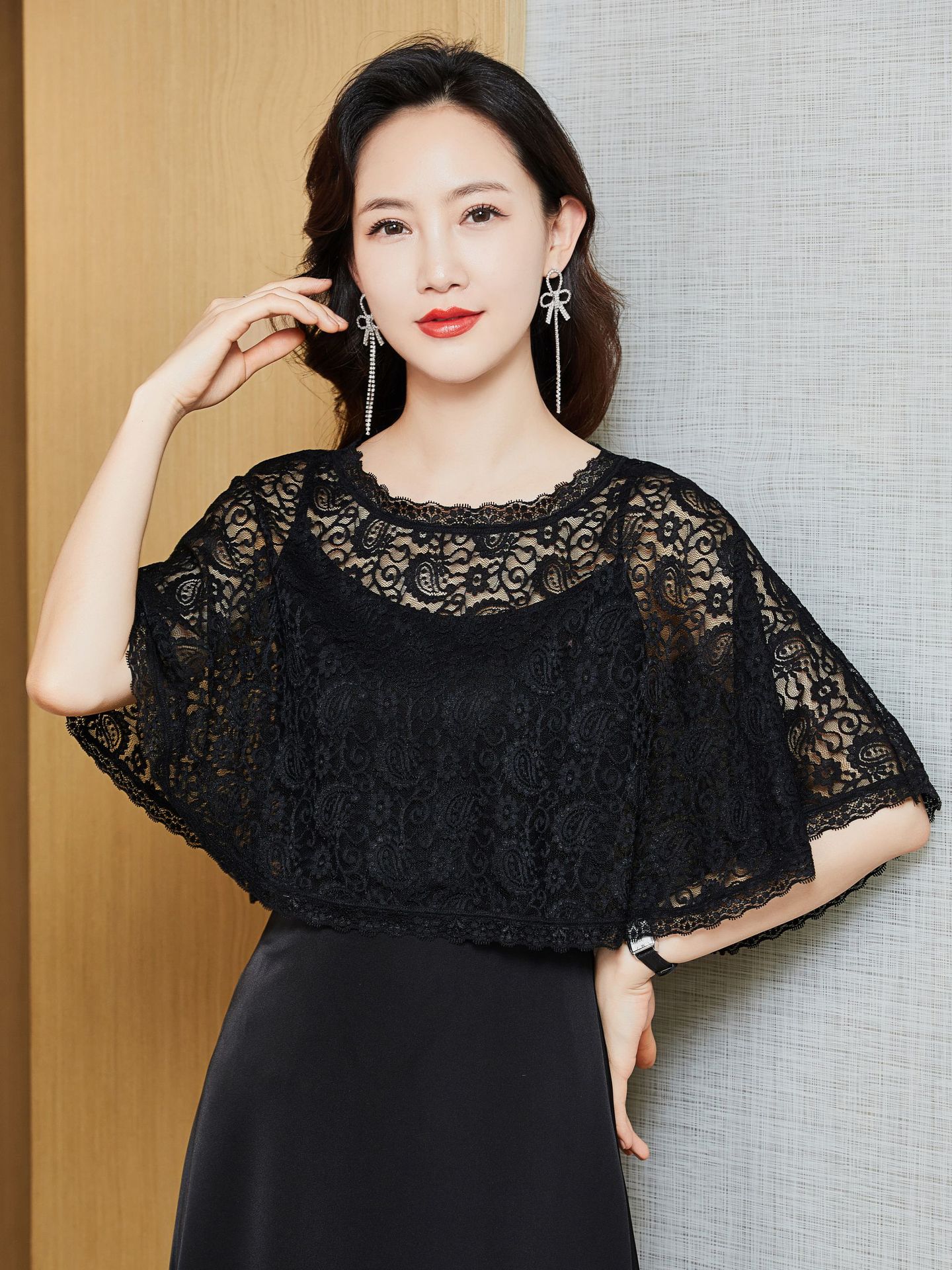 レースのマントの透かし彫りの上着は薄くて通気性があります。
