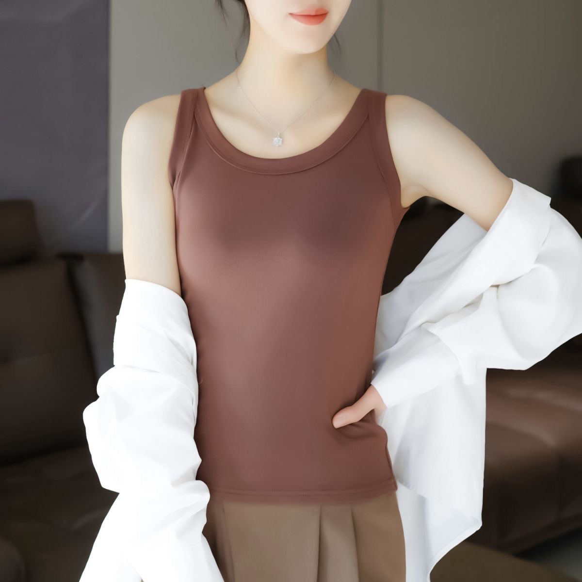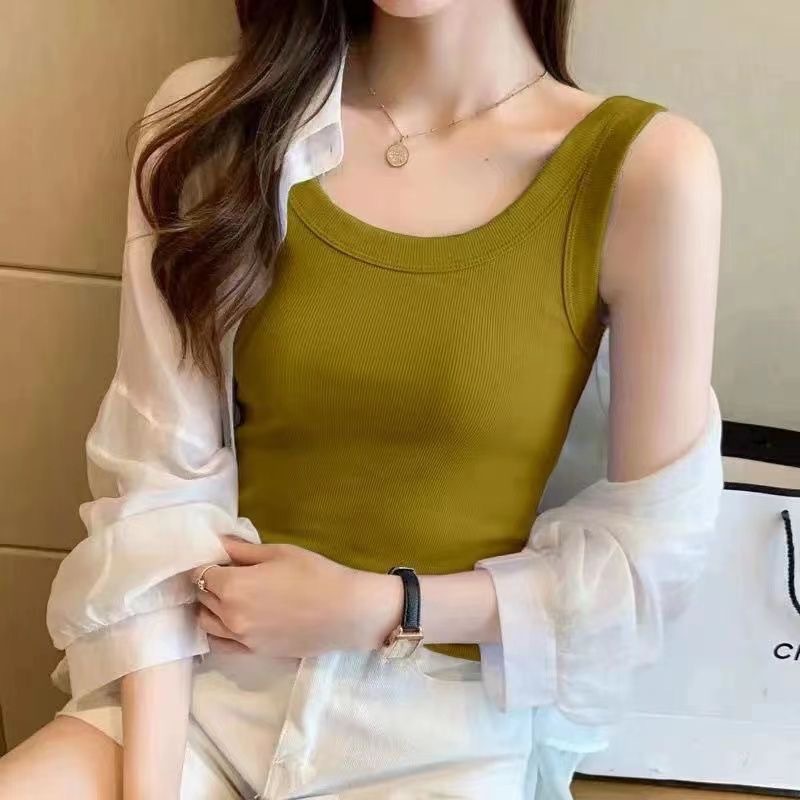 2024新型ベストの女性の中には、シャツを着た春夏の高品質綿の肌に身を包んで痩せているように見える