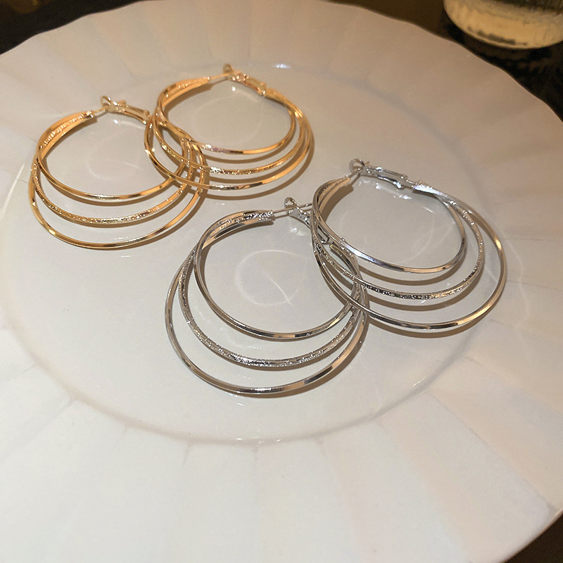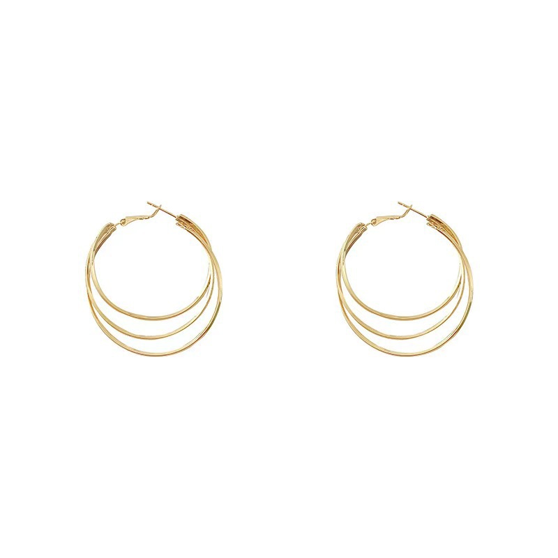 三層金属風円形幾何イヤリングファッション通勤シンプル素輪耳輪個性気質高級感耳飾り