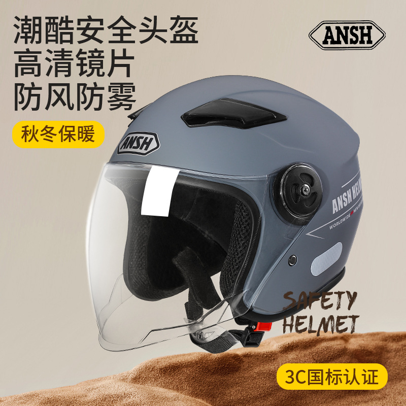 ANSHオートバイ半ヘルメットa 2四季ヘルメット電気自動車秋冬保温ヘルメット男子学生通用3c認証
