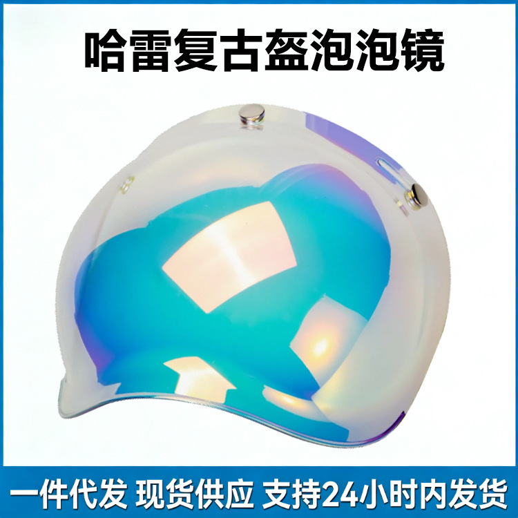 三扣式泡泡镜摩托车头盔哈雷复古盔电动车冬季防雾防风防寒镜片