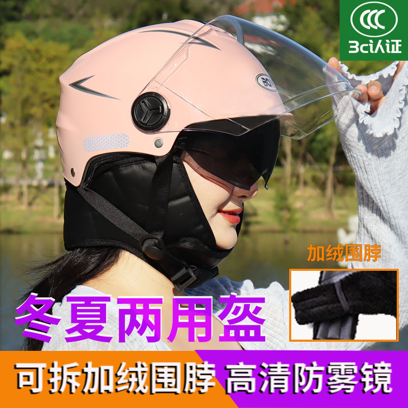 电动车头盔女士可拆围脖四季通用秋冬保暖护耳轻便摩托车3c男半盔