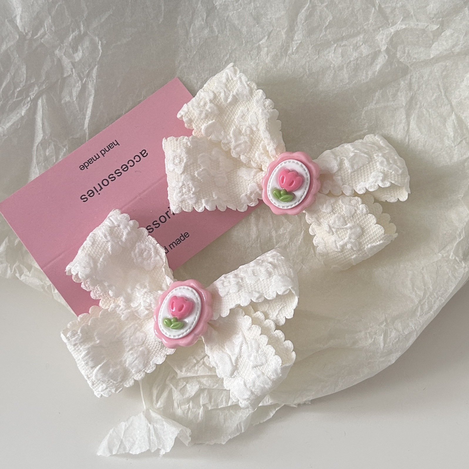 チューリップレース蝶結びヘアピンins春夏甜美風ヘアピンカモ口クリップかわいい百合学生ヘアピン