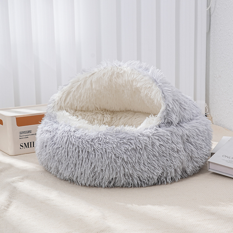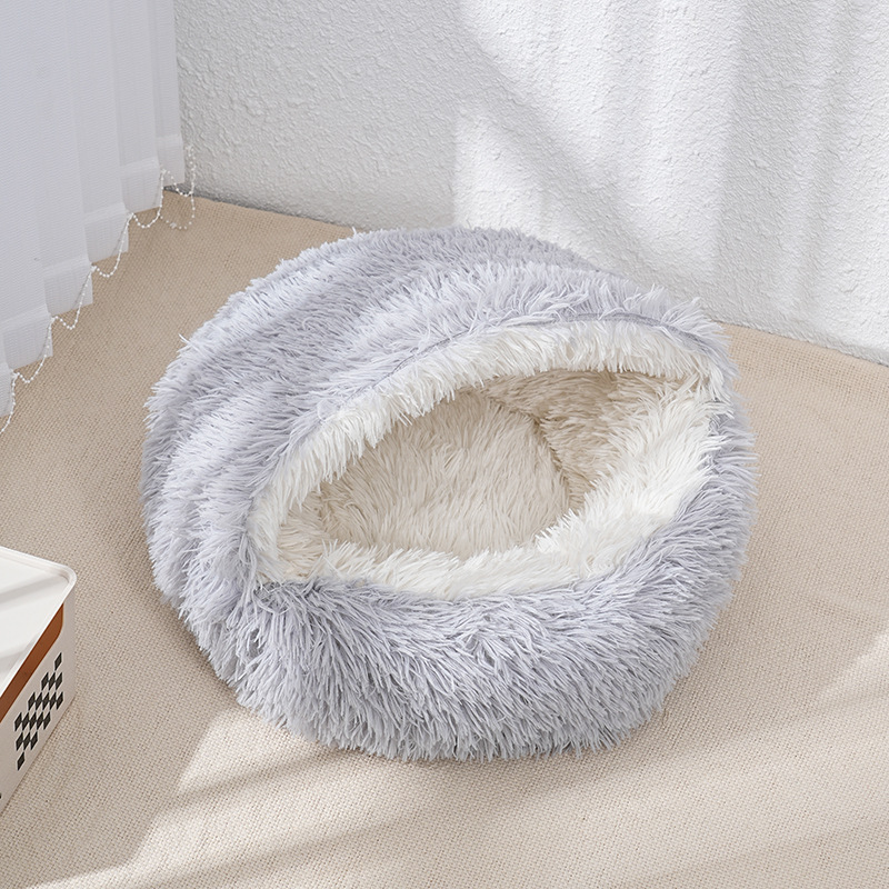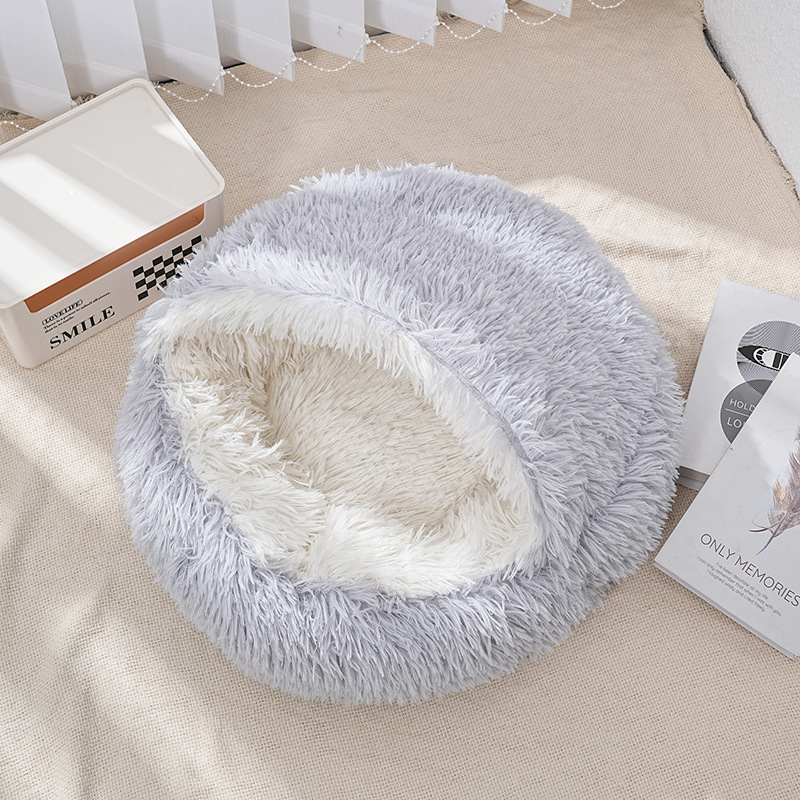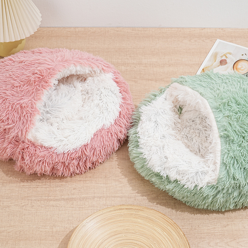 猫窝贝壳窝长毛绒半封闭宠物猫床睡袋狗窝狗床封闭式冬季保暖猫屋