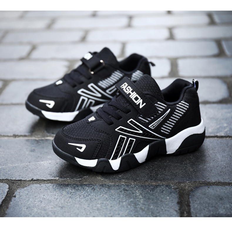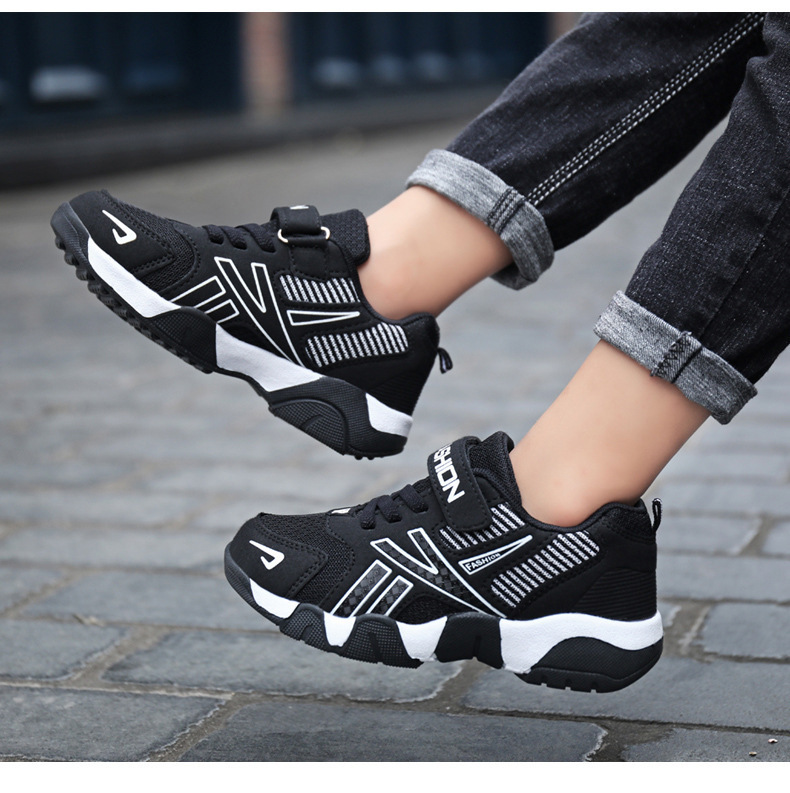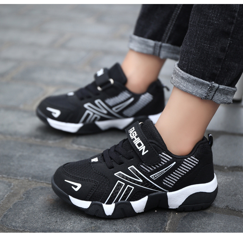 中型および大型の子供用の卸売男の子用靴、メッシュレザースポーツシューズ、春と秋の新学期ランニングシューズ、カジュアルシューズ、滑り止めと耐摩耗性