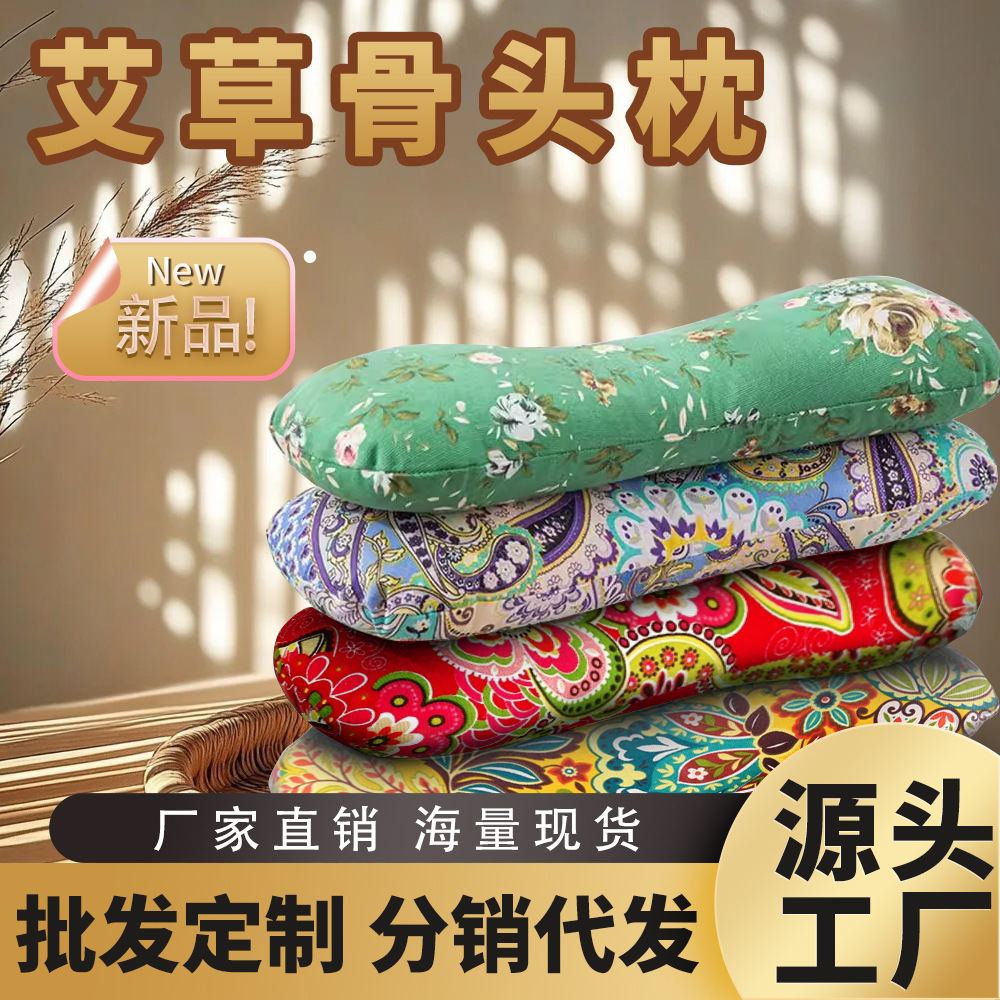 艾草颈椎枕头护颈枕艾绒艾叶护颈专用颈椎骨头枕粗布贴合纯艾批发