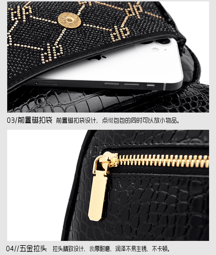 クロスボーダーの個性的な服のカバンの女性2024の新型の韓国版のファッションのリベットのシングル肩の斜め掛けの小さい方のカバンは代行します。