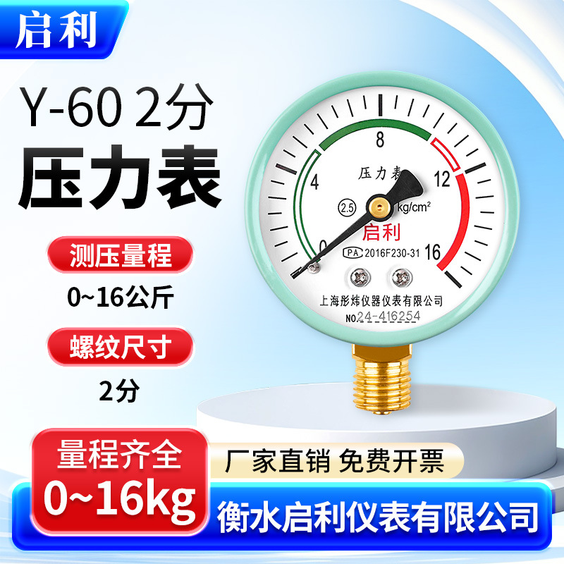 啓利【y 60圧力計0-16Kg】水圧油圧圧力計ラジアルエアコン圧力計真空計