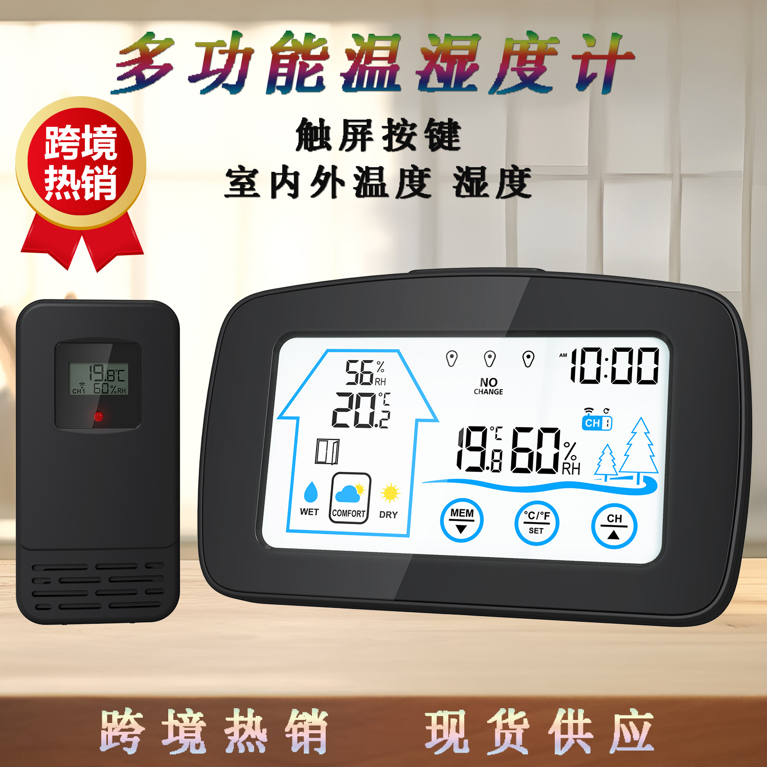 跨境背光触屏按键 无线室内外温湿度计数字显示 电子气象挂钟批发