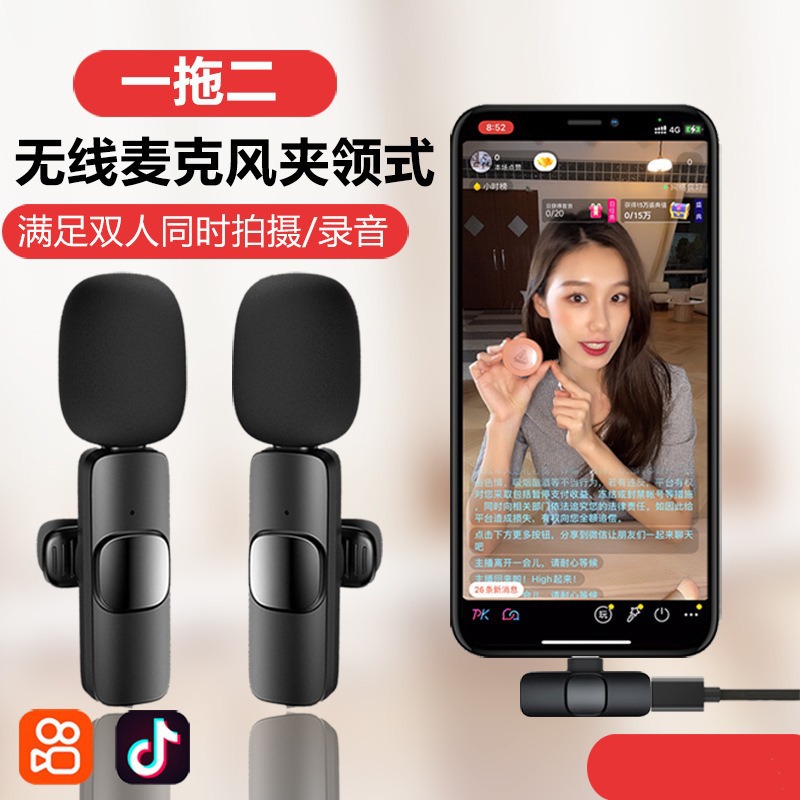 クロスボーダー専用K8K9プラグアンドプレイ1ドラッグ2ライブ無線クリップマイク