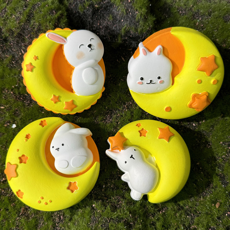【中秋節】中秋節月餅形状三日月玉兎金香薫石膏人形白胚手作りDIY