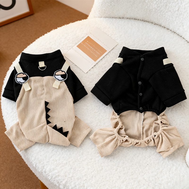 狗狗衣服秋冬可爱布莱克恐龙四脚背带裤子套装小型犬泰迪宠物服饰