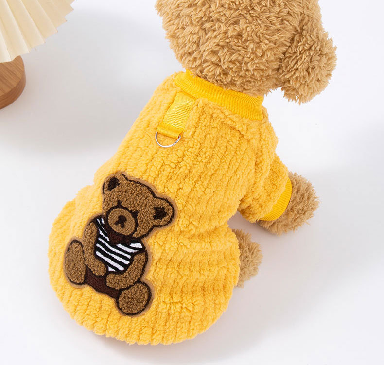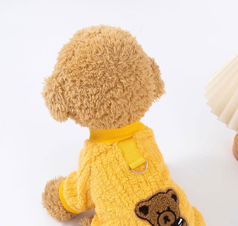 ペット犬服秋冬ベルベット厚手フード付きベアー四足服テディ比熊小型犬ペット服