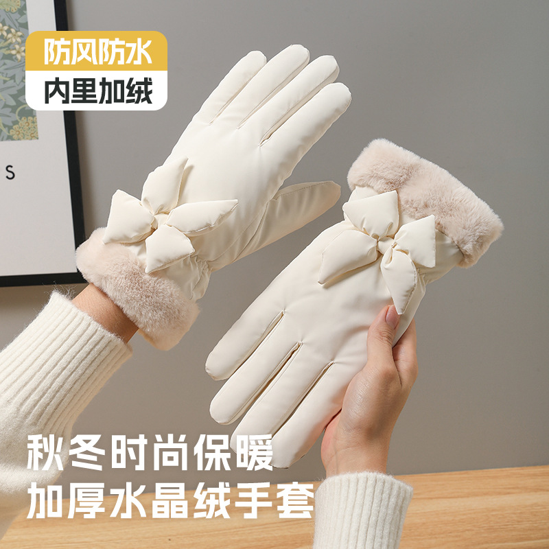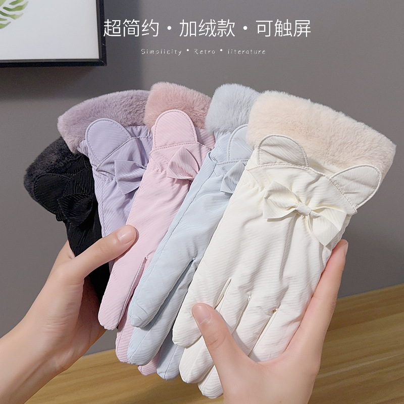 冬季保暖手套加厚绒韩系可爱学生触屏户外防滑防水开车骑行手套女