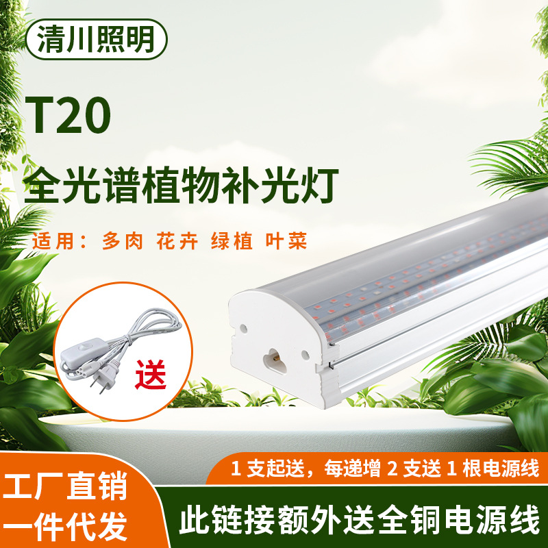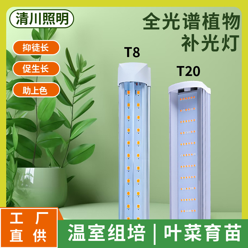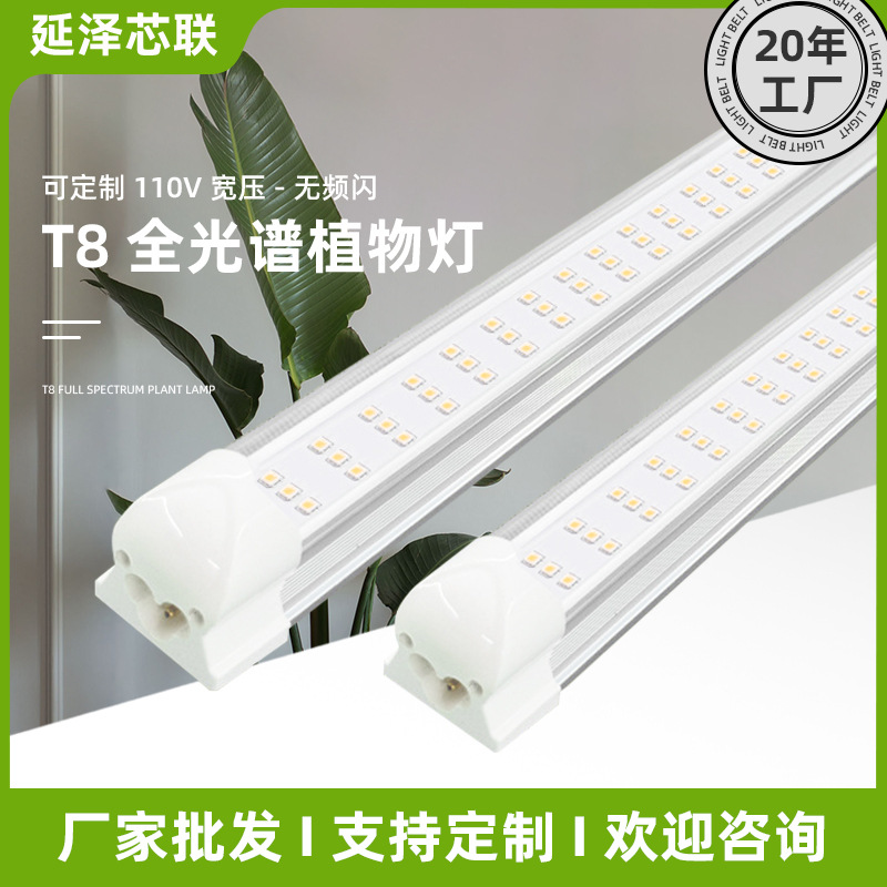 全光谱T8双排三排T20植物灯生长灯LED灯管育苗组培补光多肉花卉