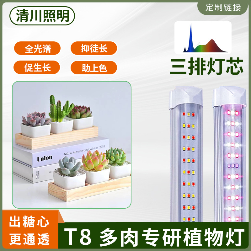 全スペクトル多肉植物成長灯T8三列花卉着色防止徒長水培葉菜植物補助灯