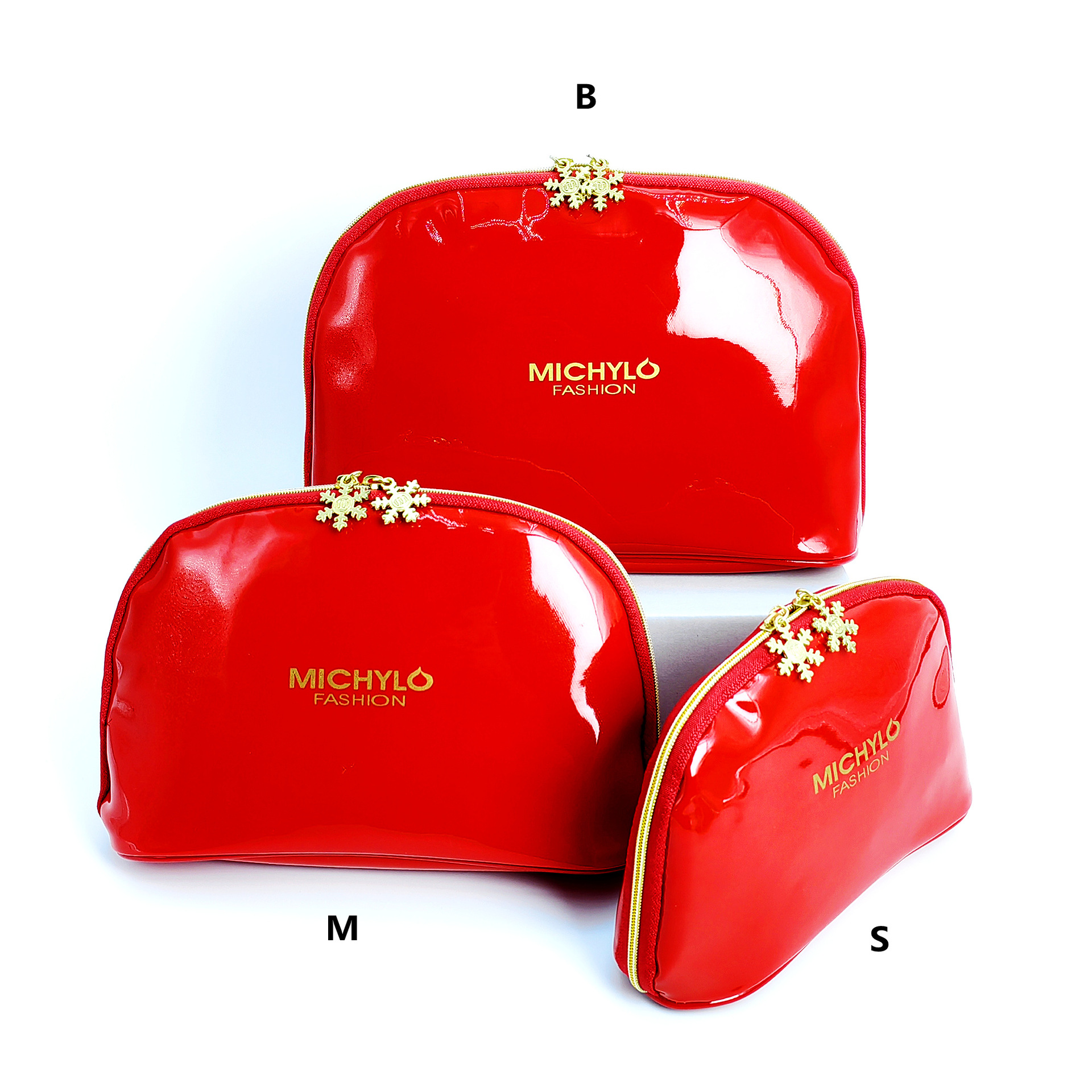 高級鏡面革半円形化粧バッグ旅行収納バッグ結婚式花嫁バッグ大中小三点セットバッグ