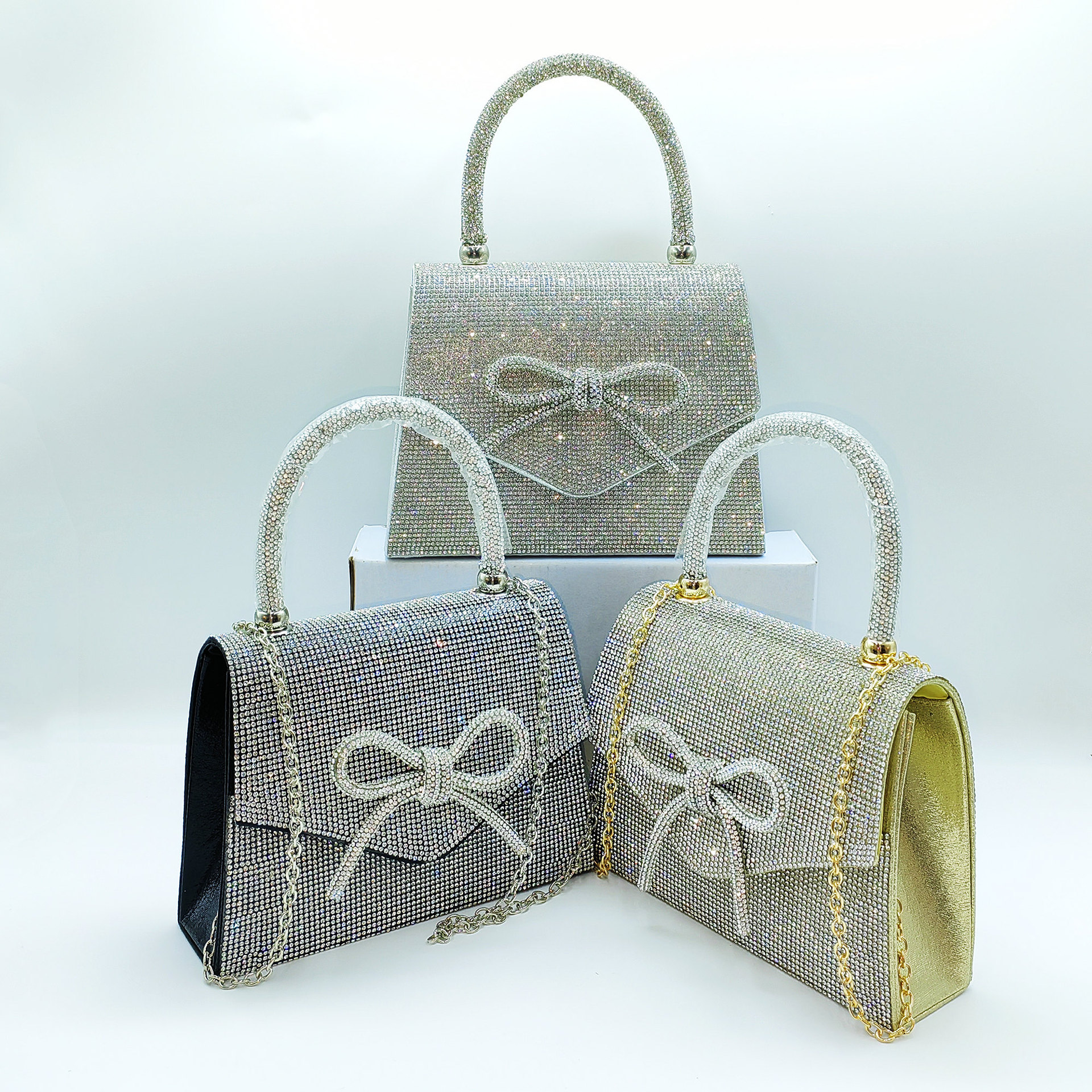 2025国境を越えたメーカーの高級ダイヤモンドの晩餐会は欧米の満ドリルの蝶結びのハンドバッグが輝いている花嫁のバッグを包んだ